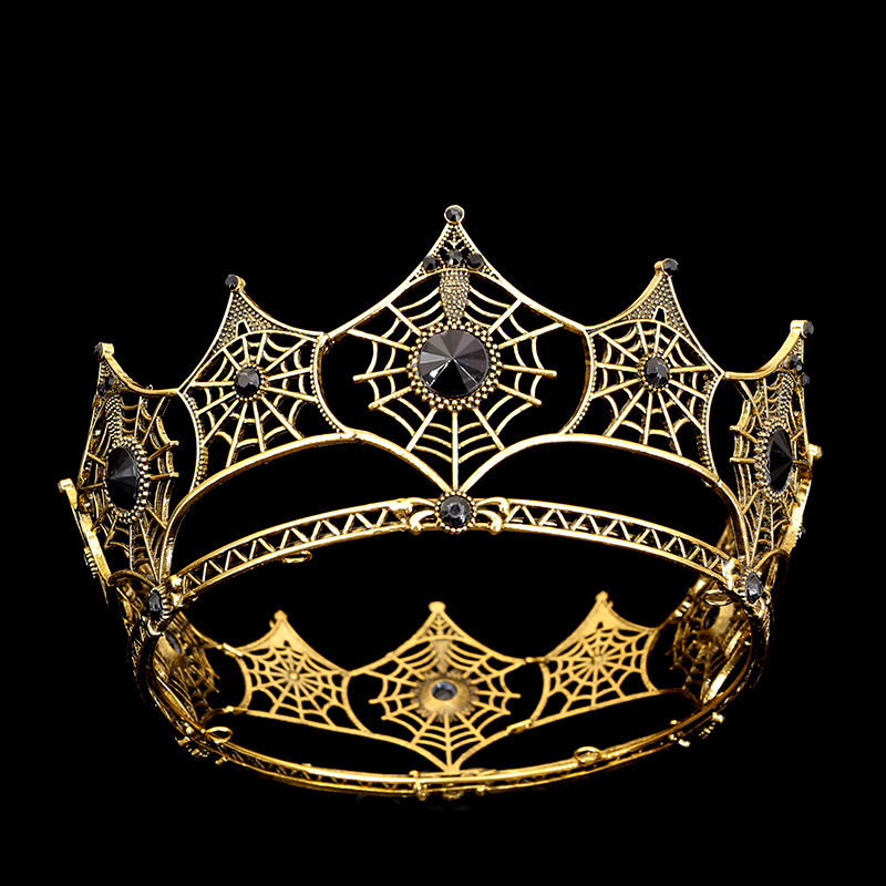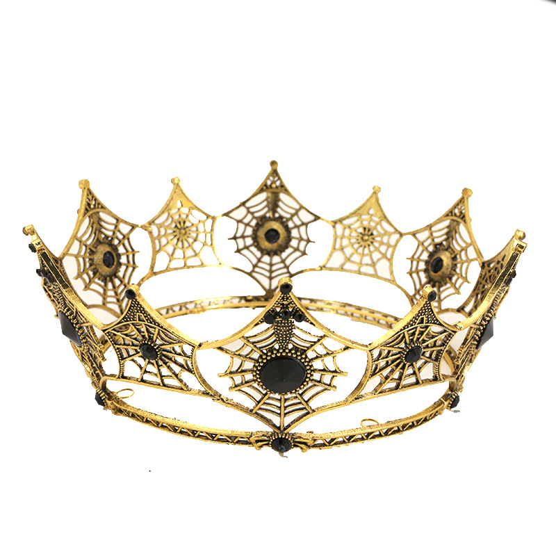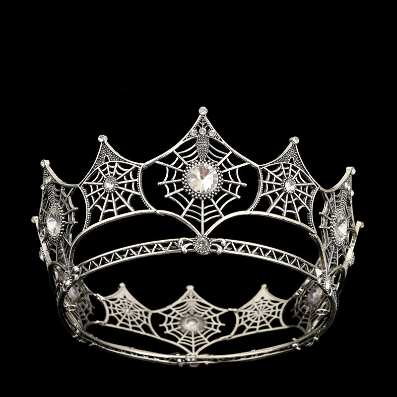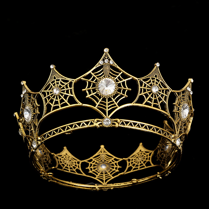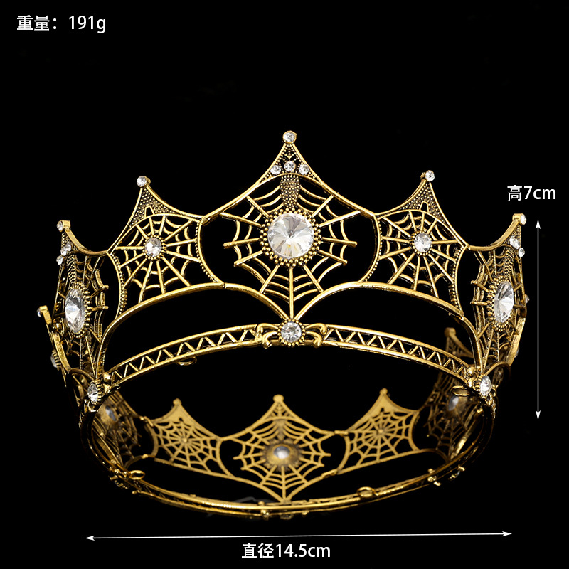 跨境新款欧美蜘蛛网合金镶钻古金古银新娘发饰巴洛克新娘皇冠发饰