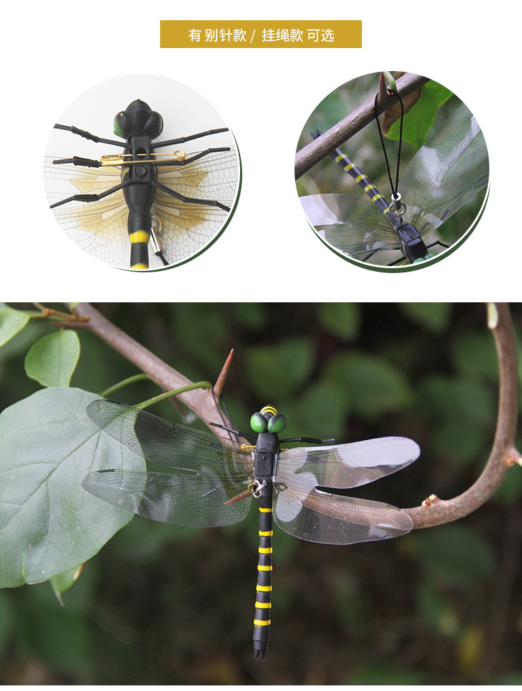 黑蜻蜓带别针挂绳户外物理驱虫仿真蜻蜓