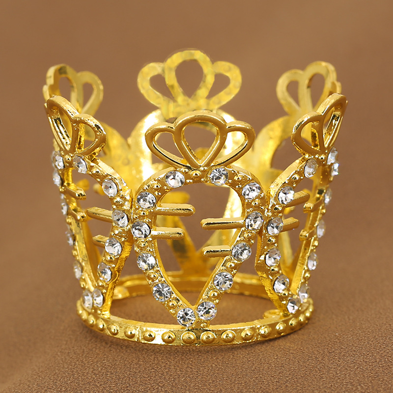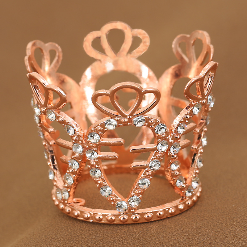 原创跨境鲜花汽车儿童双桃心水滴水钻蛋糕装饰摆件迷你合金皇冠