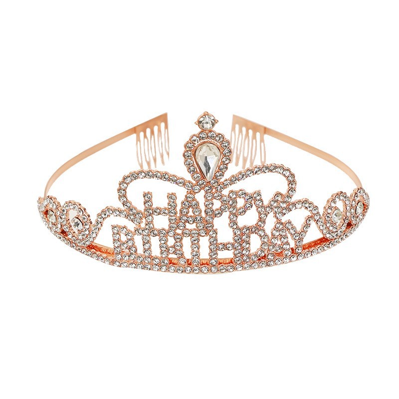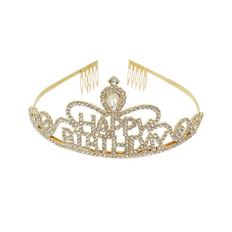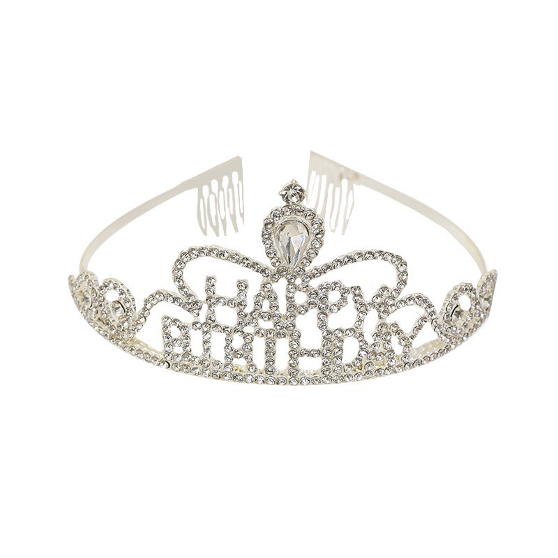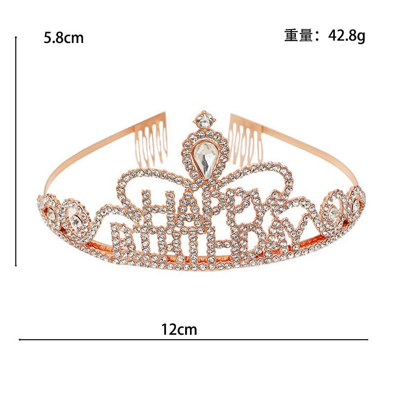 cross-border happy birthday happy birthday party crown hair clasp alloy rhinestone headdress rhinestone hair accessories pie