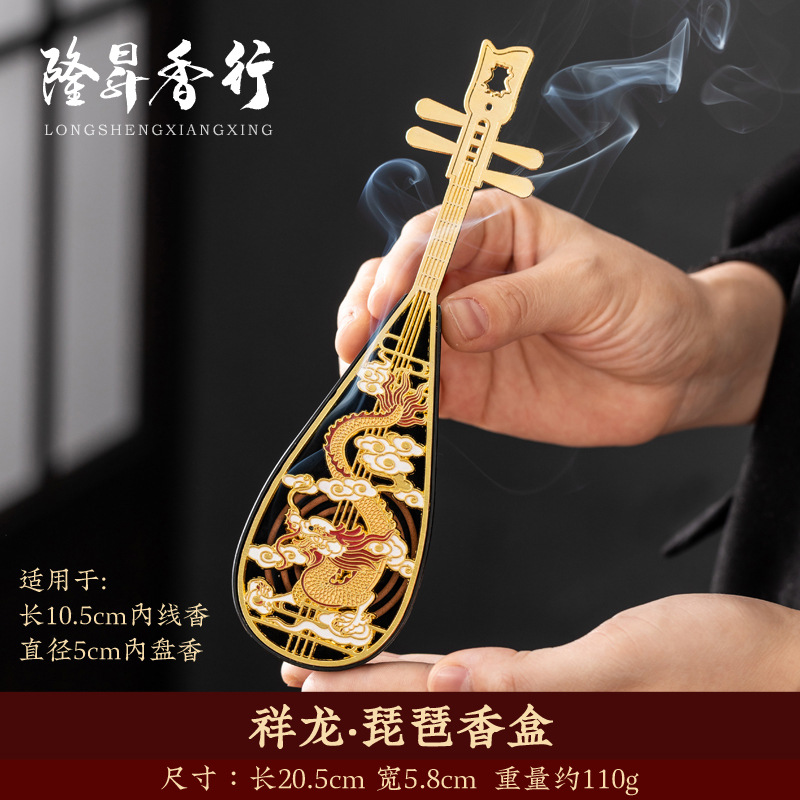 创意彩绘祥龙琵琶香盒小祥云线香盒盘香炉室内家用炉卧香盒小摆件