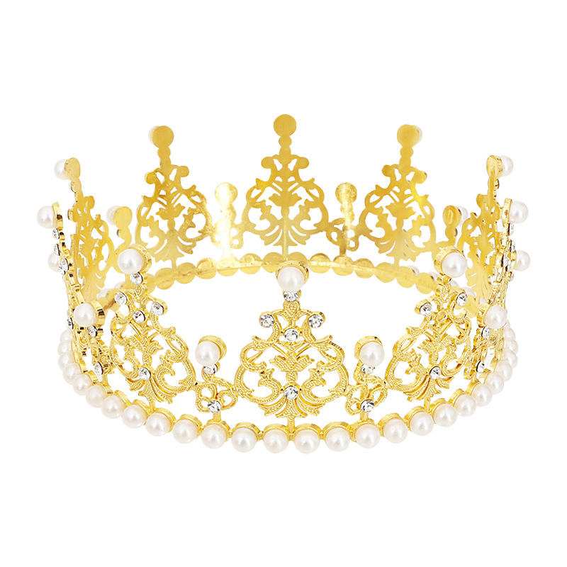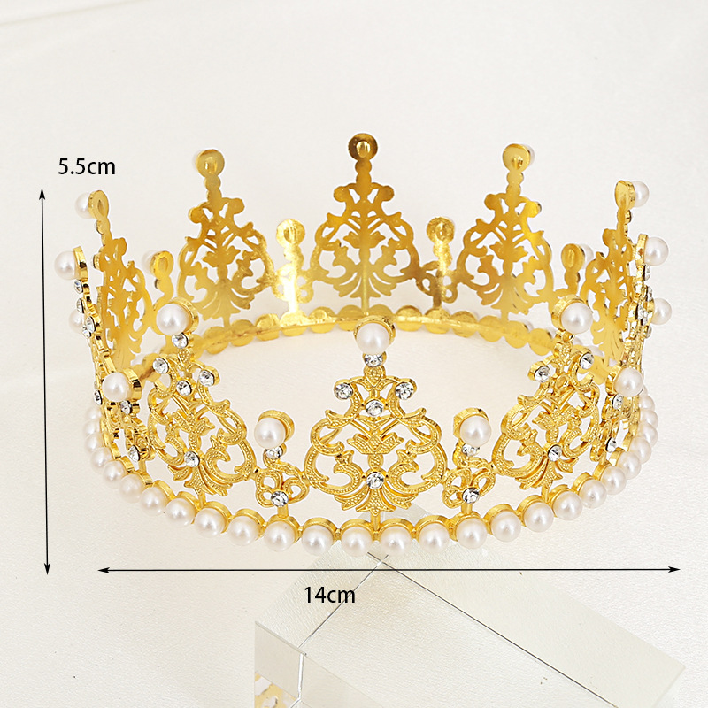 新娘头饰烘焙蛋糕皇冠高亮珍珠轻款整圆生日装饰品派对聚会配饰