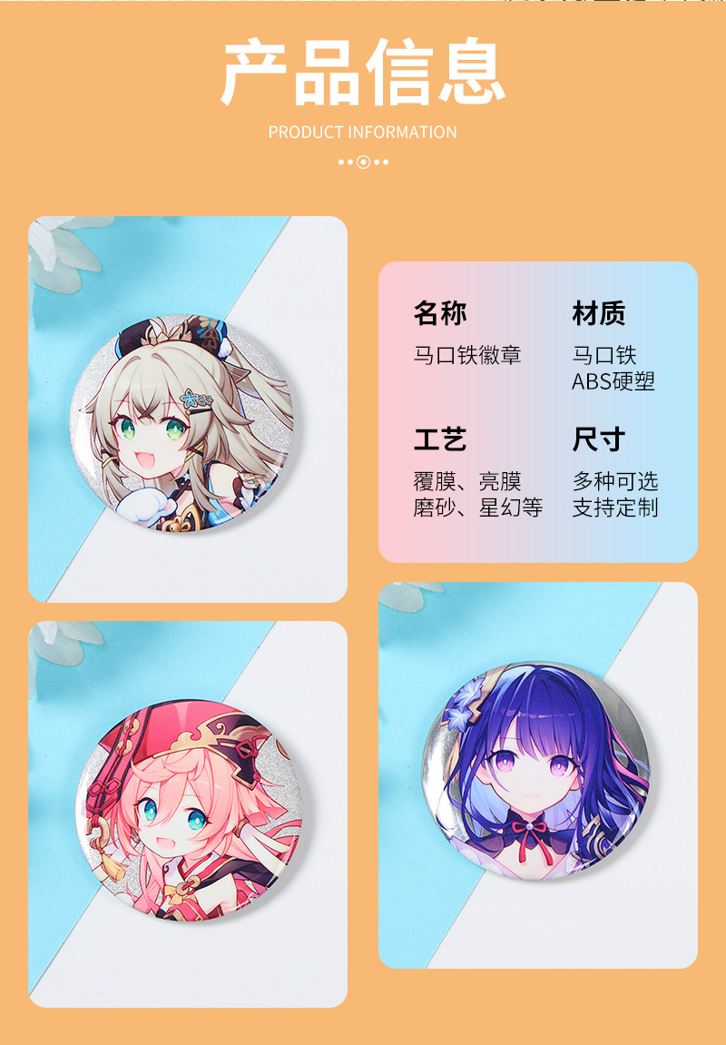 原神周边马口铁胸章拉丝金银葱胸针别针徽章流浪者二次元工艺品