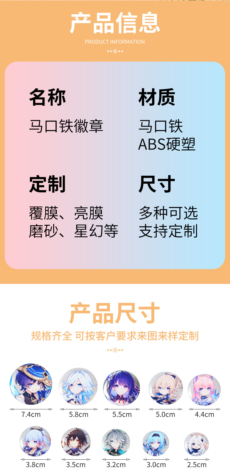 咒术回战徽章别针活动礼品挂背包小饰品二次元礼物胸章来图定 制