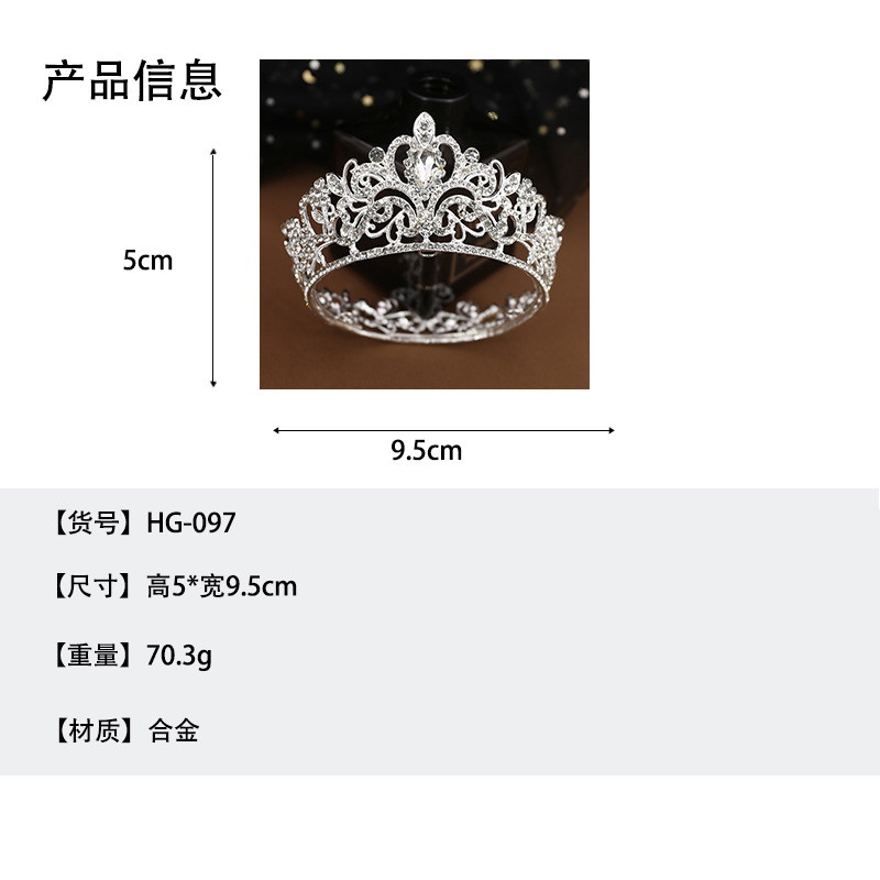 新娘饰品婚纱礼服配饰结婚头饰生日烘焙鲜花装饰皇冠合金成人圆发