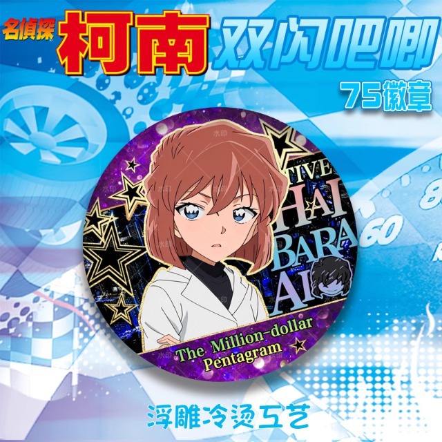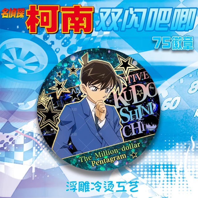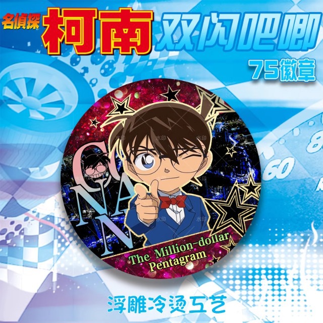 名侦探柯南动漫周边双闪吧唧徽章浮雕冷烫新款镭射胸章马口铁谷子