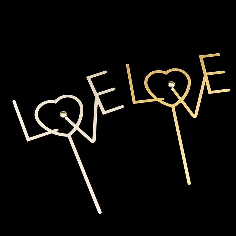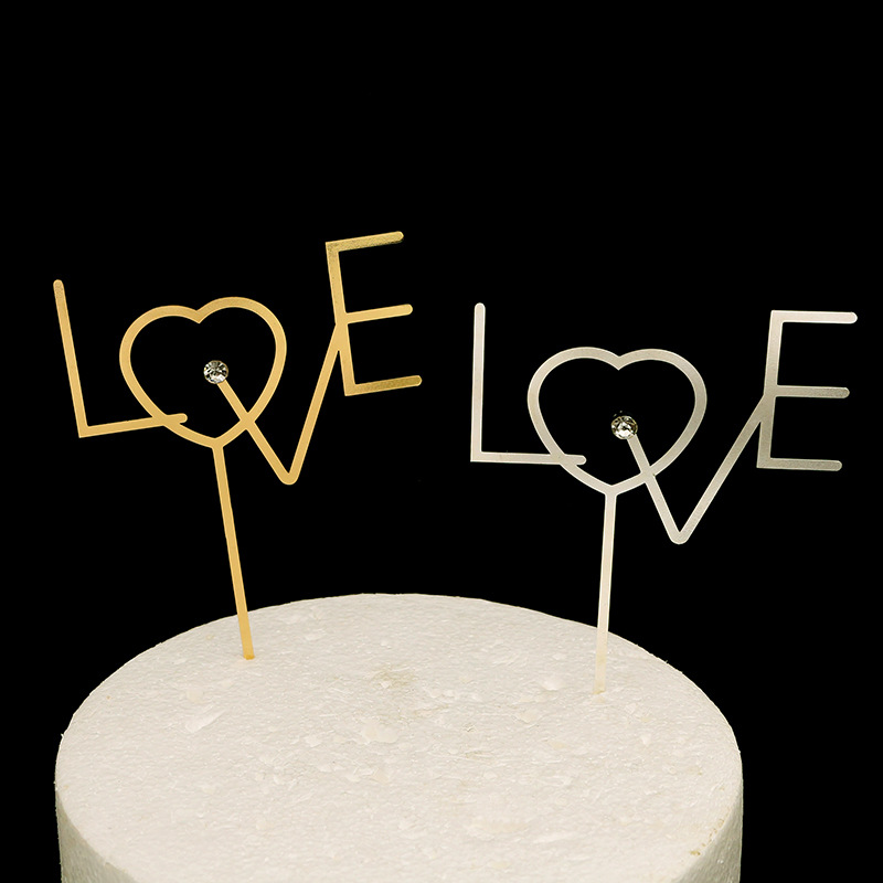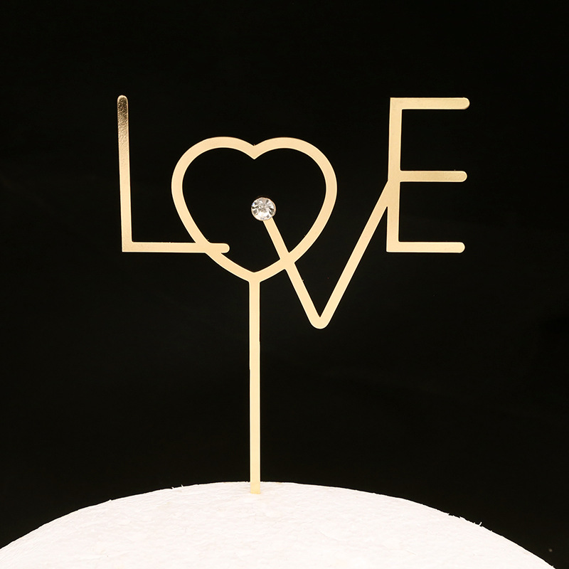原创铁艺七夕情人节爱意LOVE金属表白蛋糕装饰摆件甜品爱心插牌件