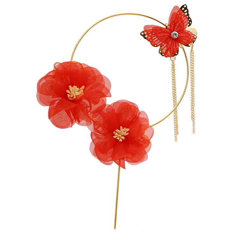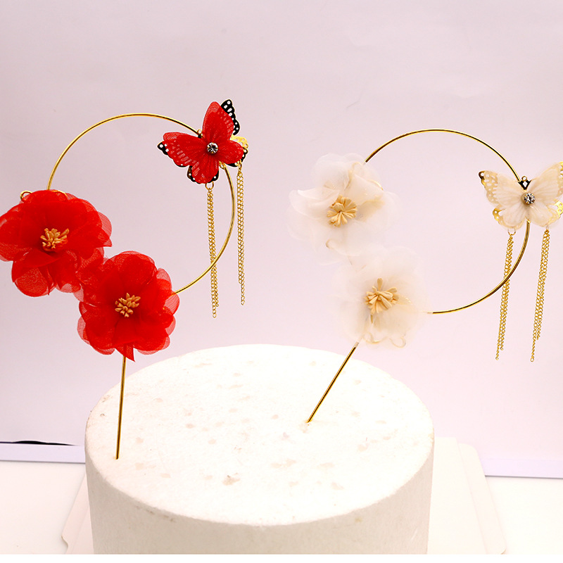 玫瑰花生日蛋糕古风插件金色红色喜庆插牌烘焙装饰插旗蝴蝶摆件