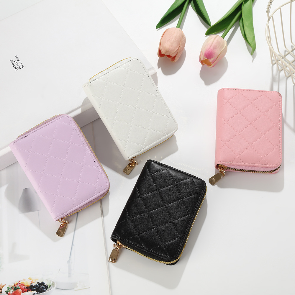 跨境2025女卡片保护套收纳小卡包绣花菱格9卡位风琴卡包小巧零钱