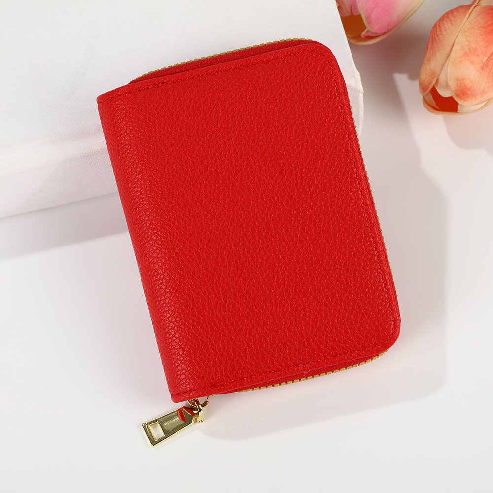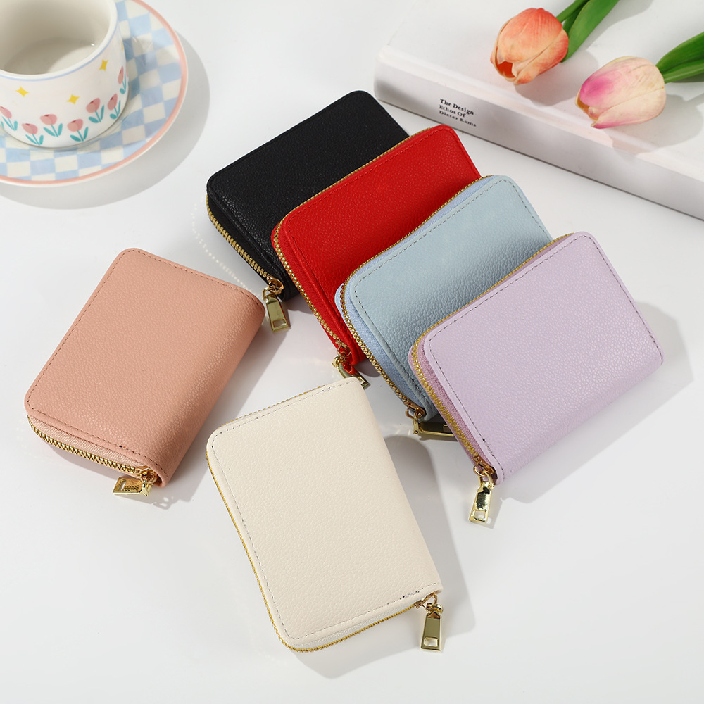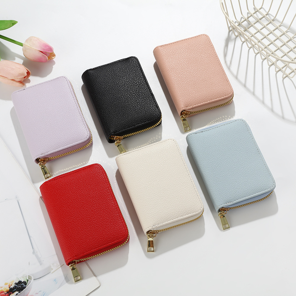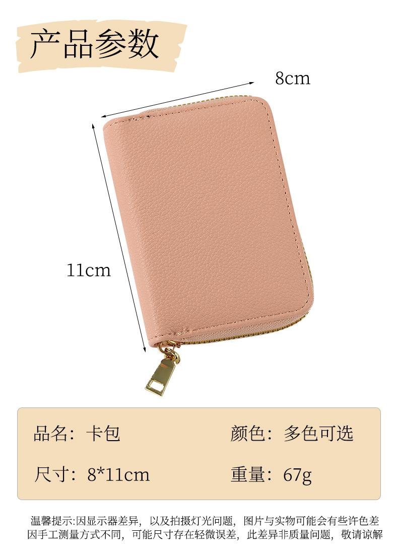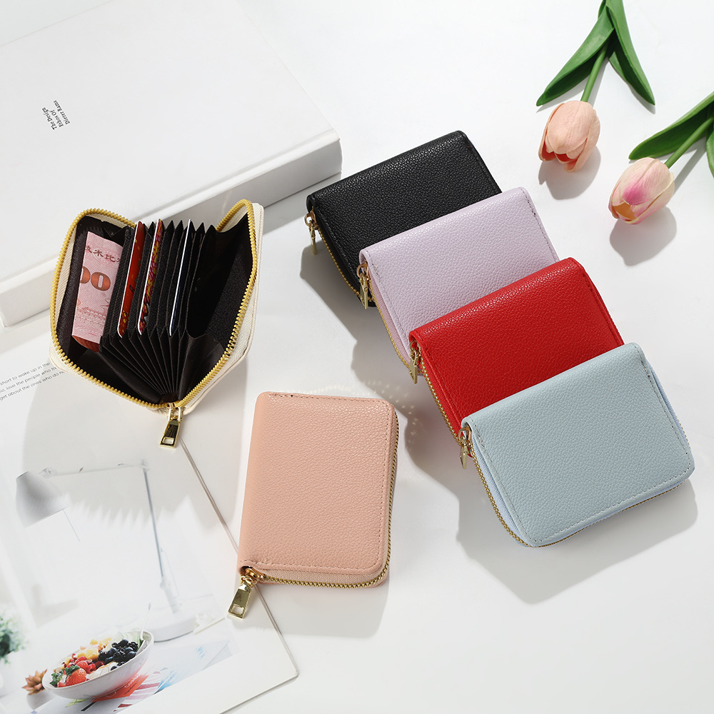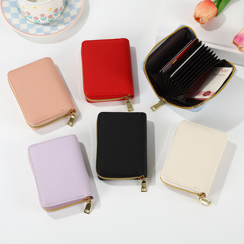 跨境新款女士纯色风琴卡套荔枝纹卡包简约大容量多卡位零钱包风潮