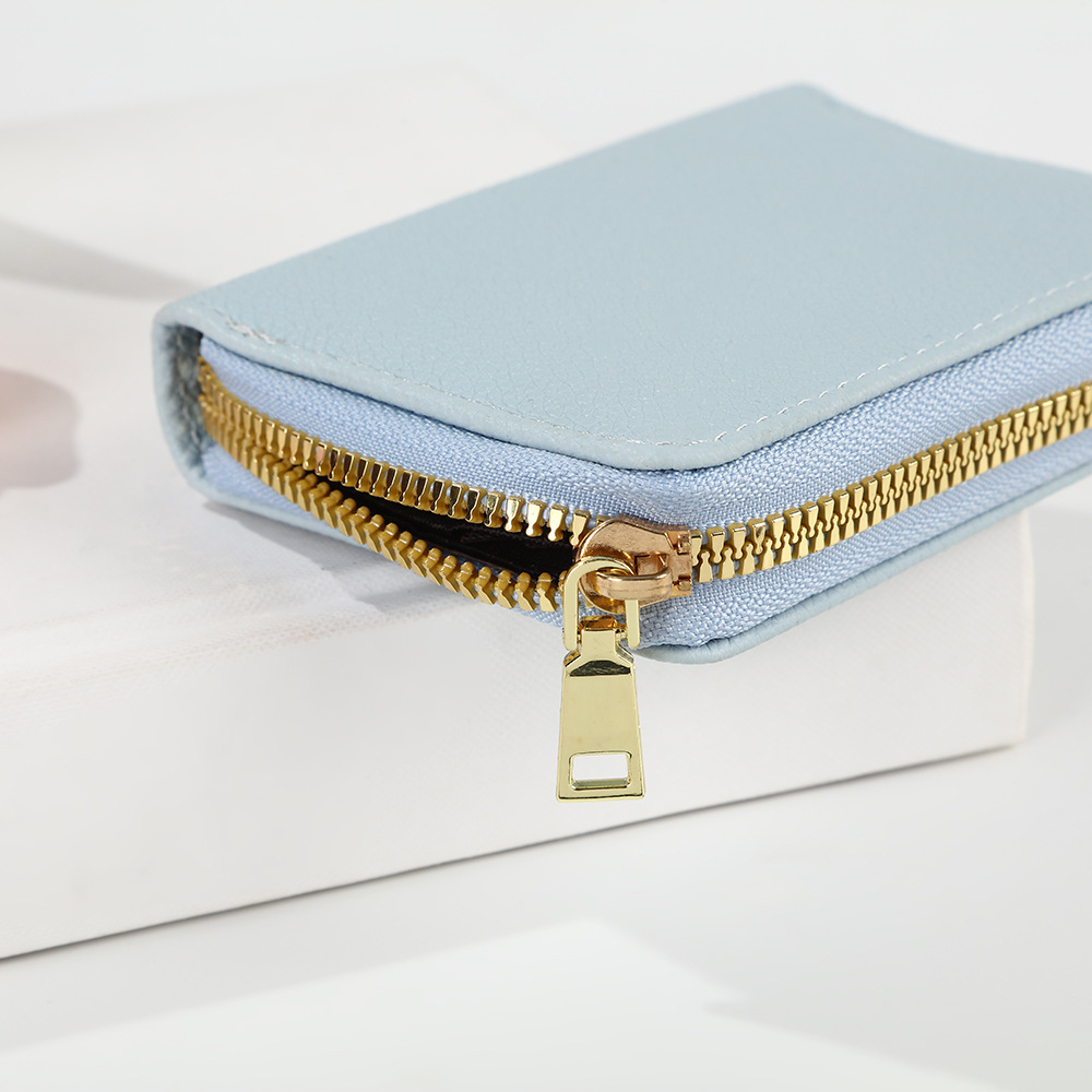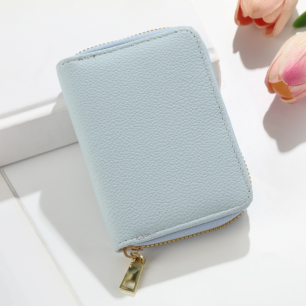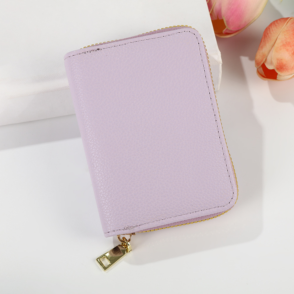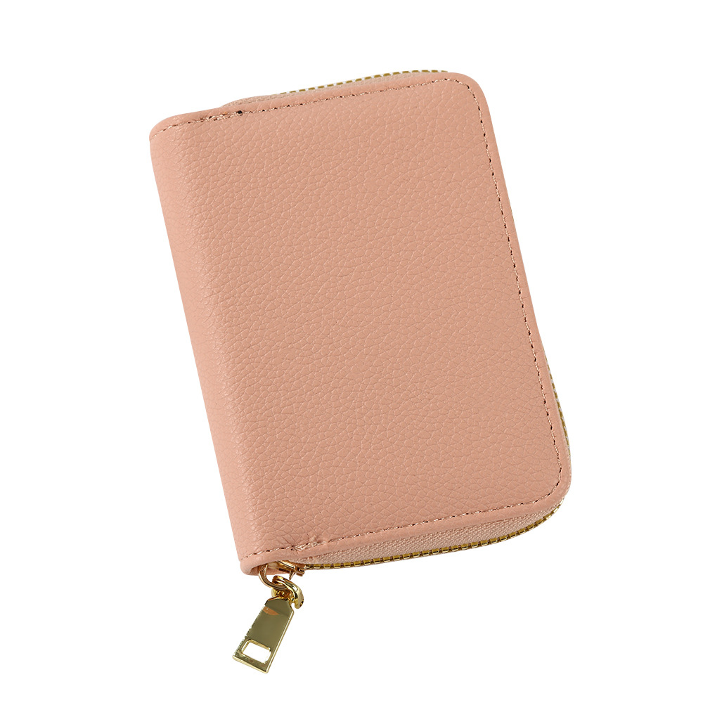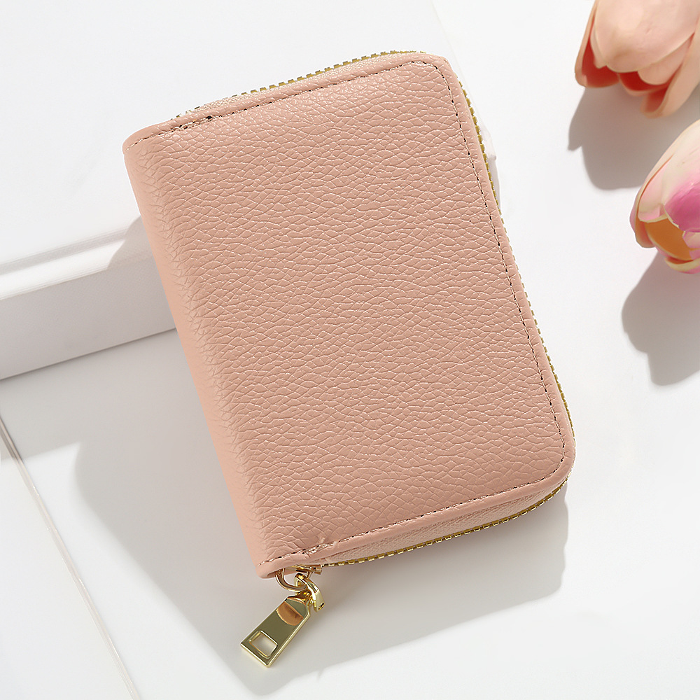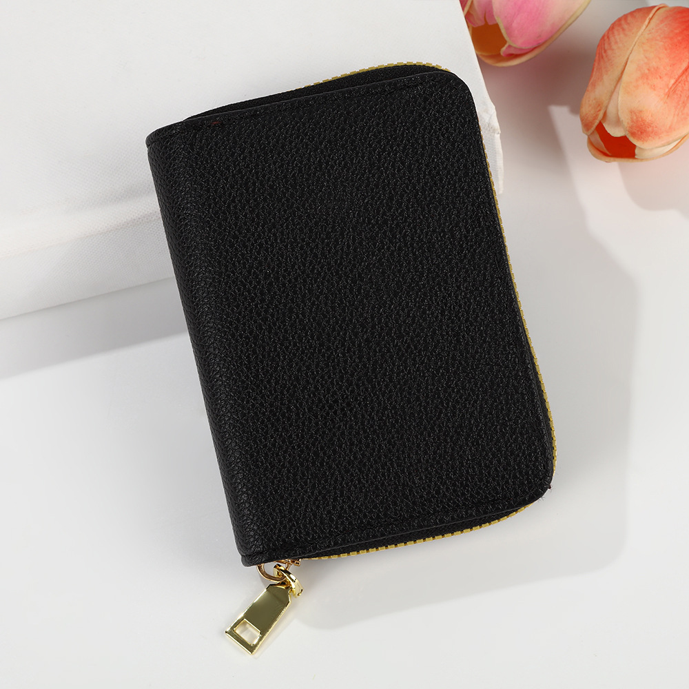 跨境新款女士纯色风琴卡套荔枝纹卡包简约大容量多卡位零钱包风潮