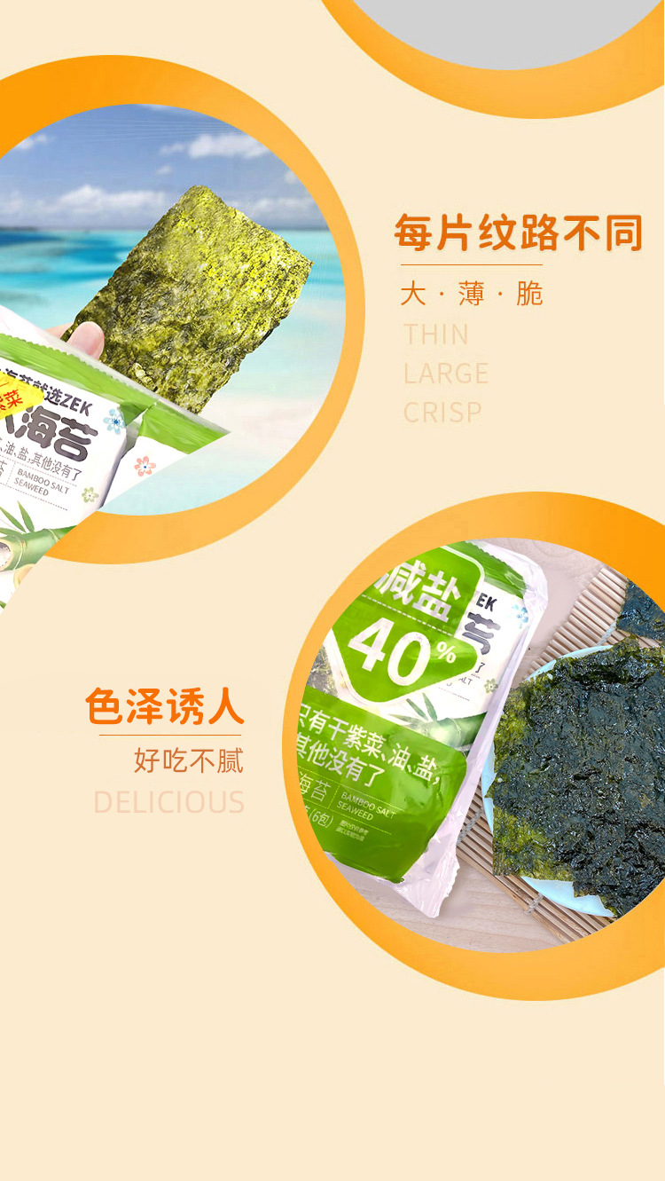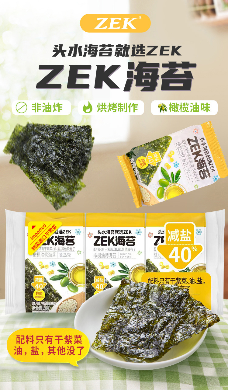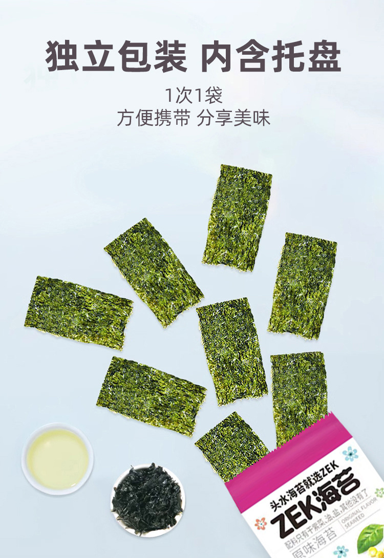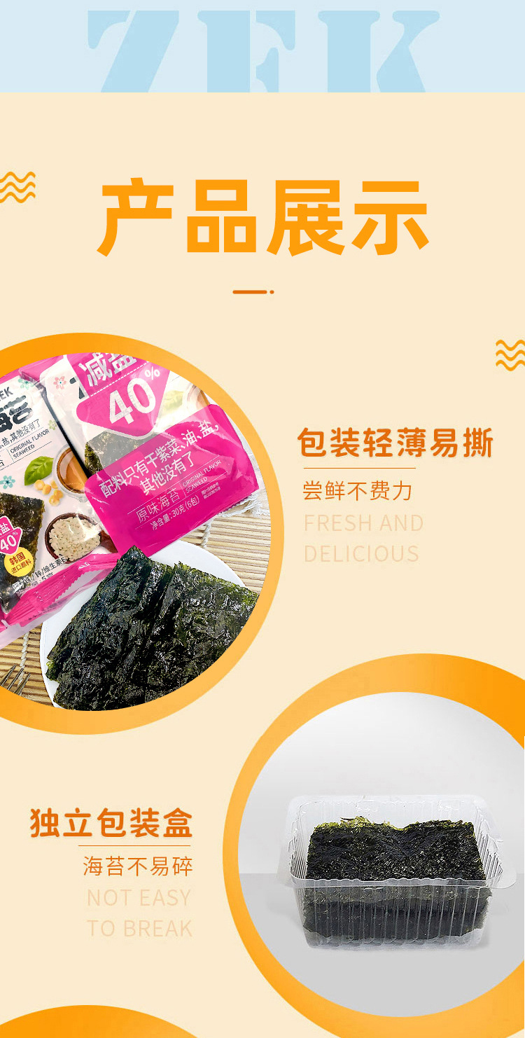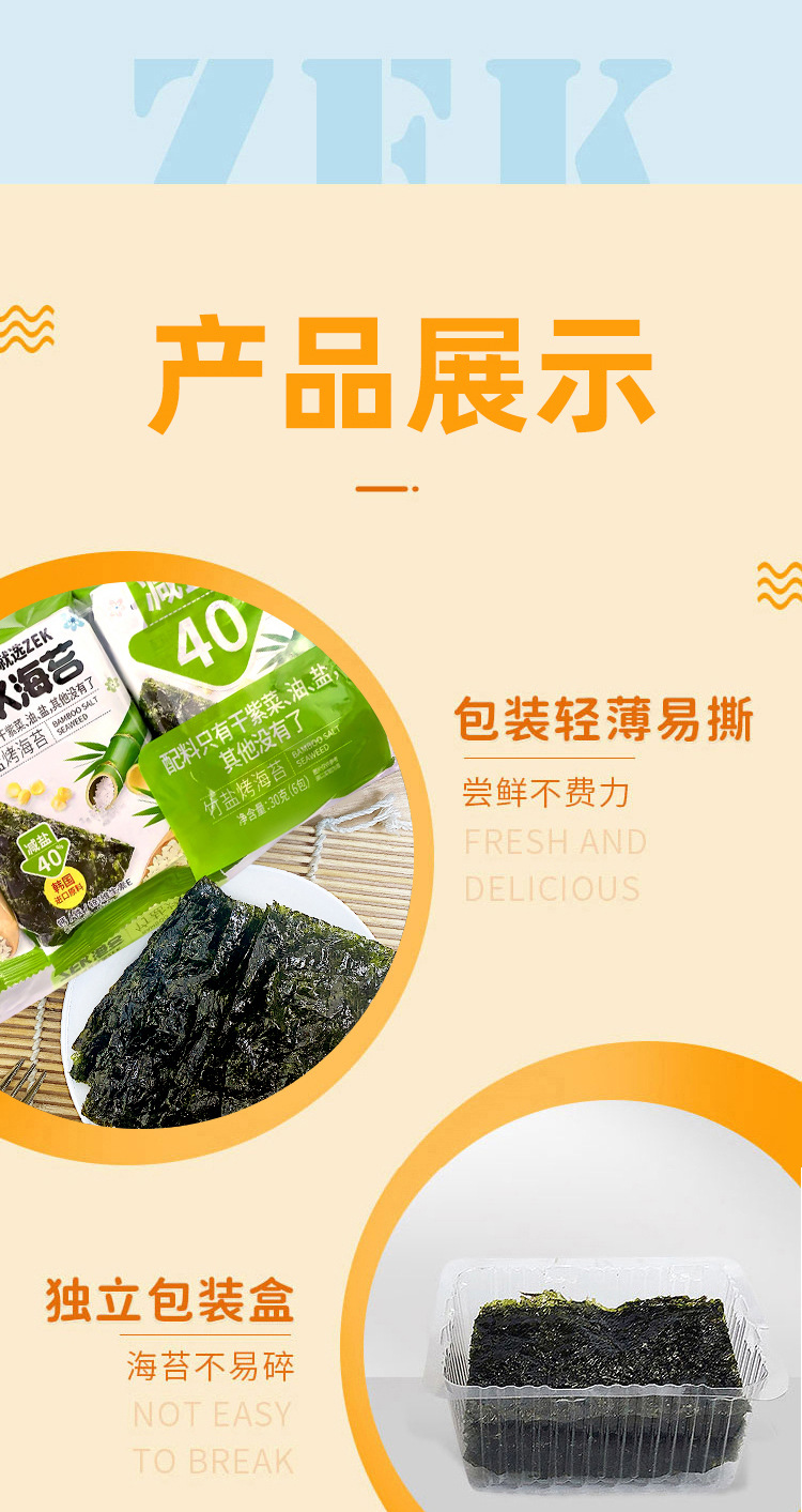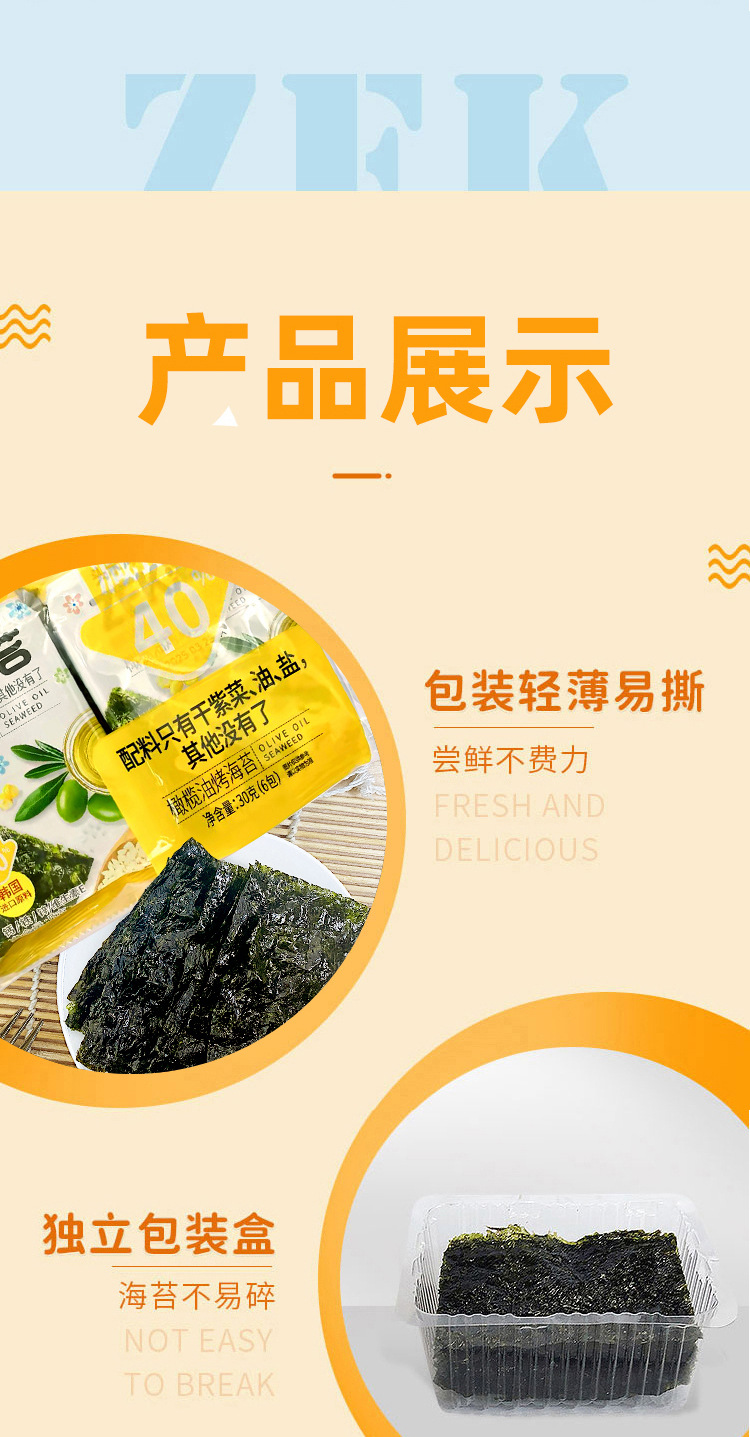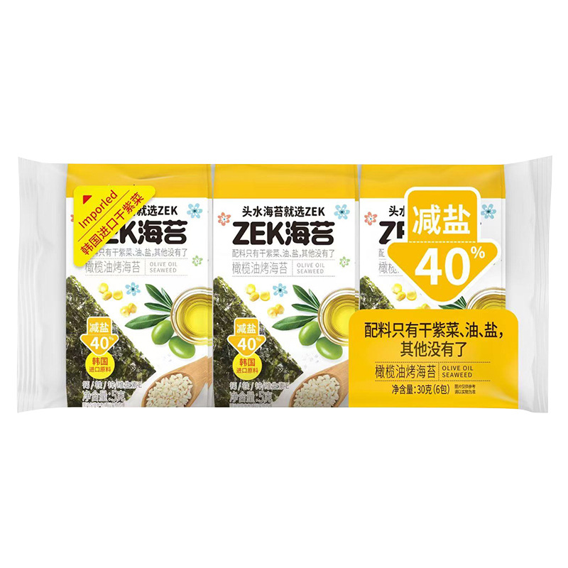 zek海苔30g袋装减盐海苔原味橄榄油味竹盐烤海苔开袋即食小零食