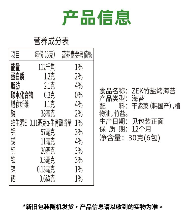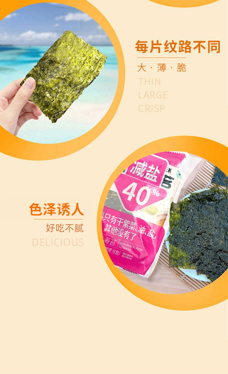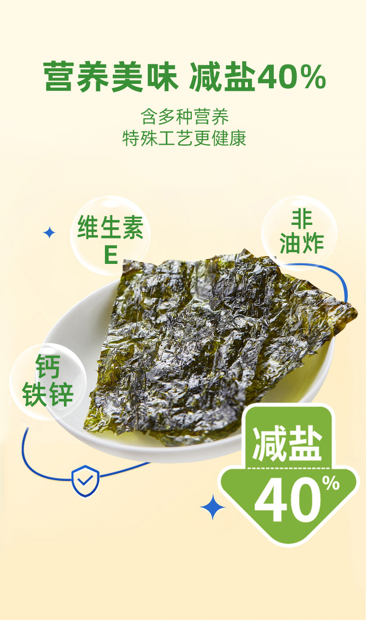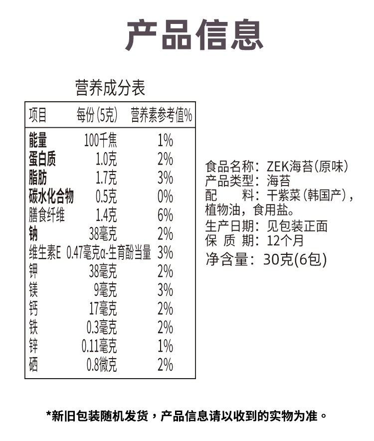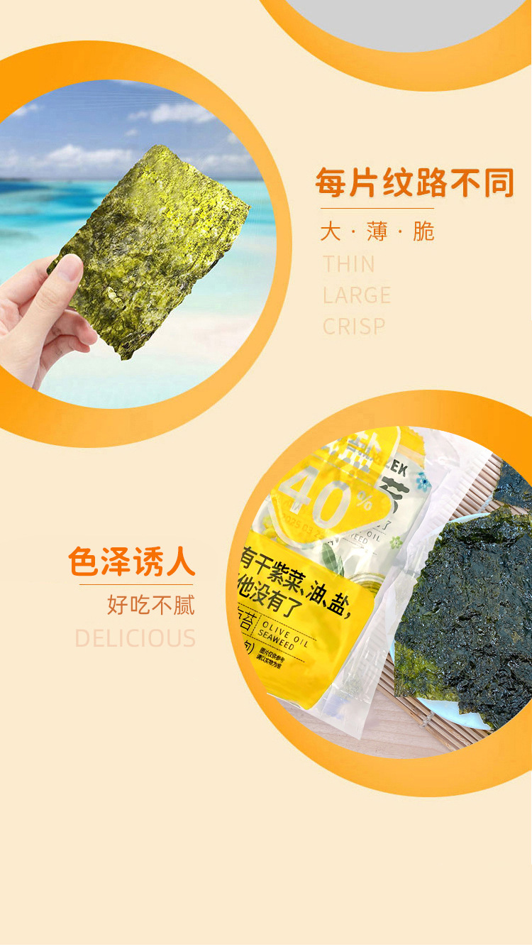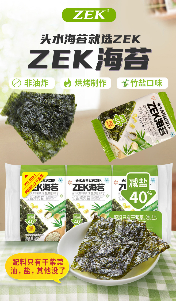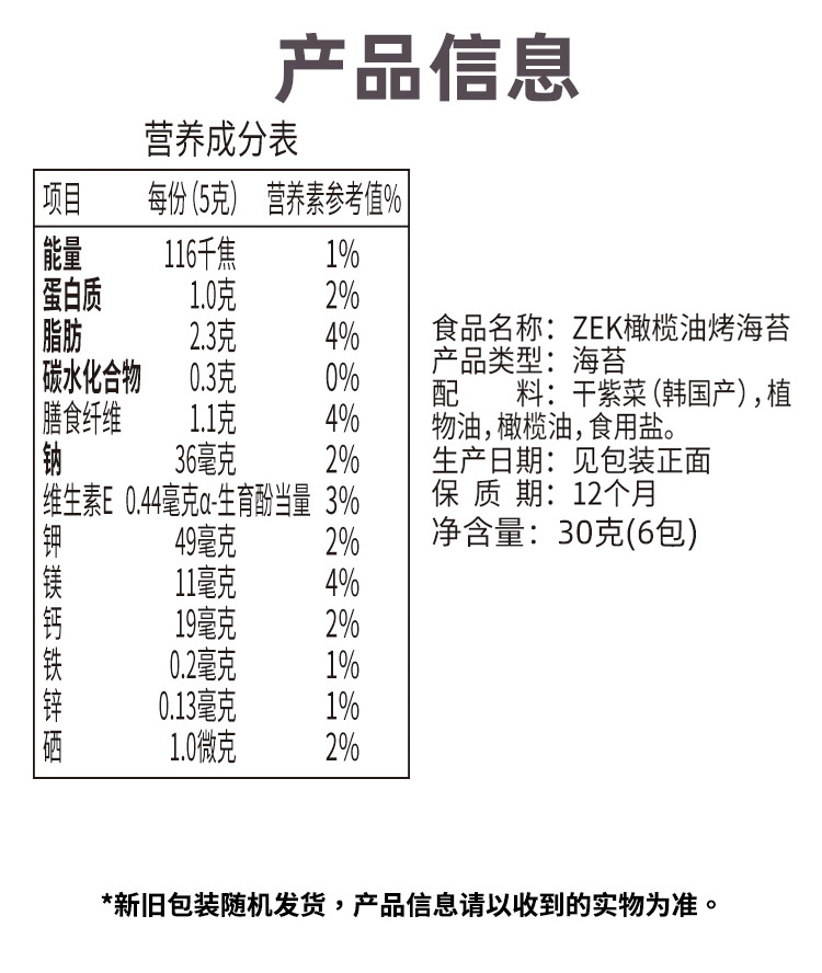 zek海苔30g袋装减盐海苔原味橄榄油味竹盐烤海苔开袋即食小零食