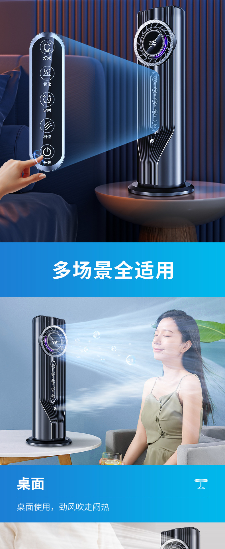 跨境新品桌面风扇制冷静音空调风USB插电款喷雾风扇简约爆款定制