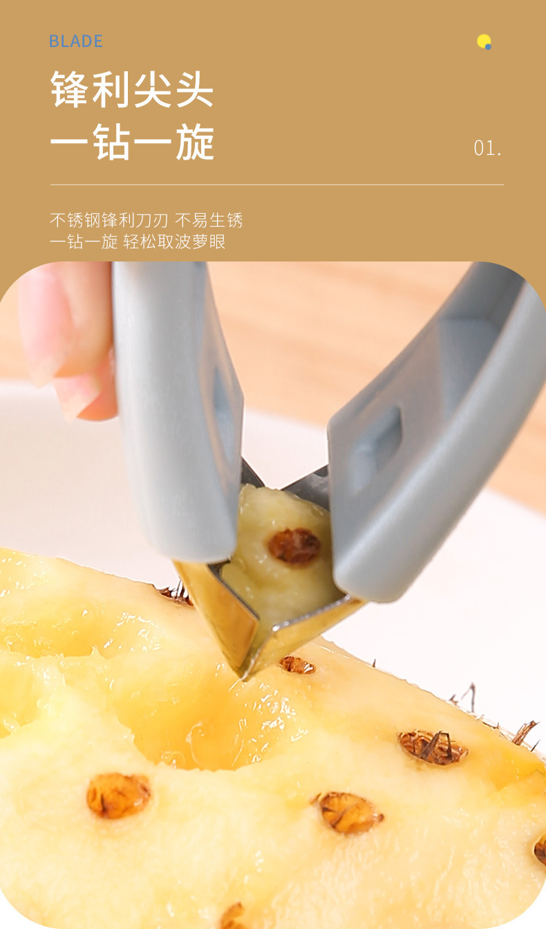 精美不锈钢尖头菠萝草莓辣椒夹家用多功能削水果去蒂神器