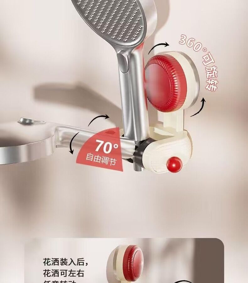 吸盘花洒支架家用免打孔淋浴喷头浴室柜可调节吸盘式固定器