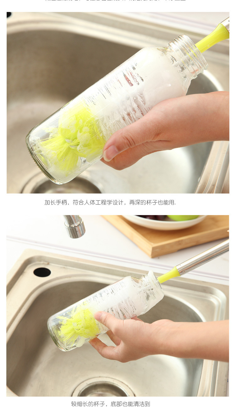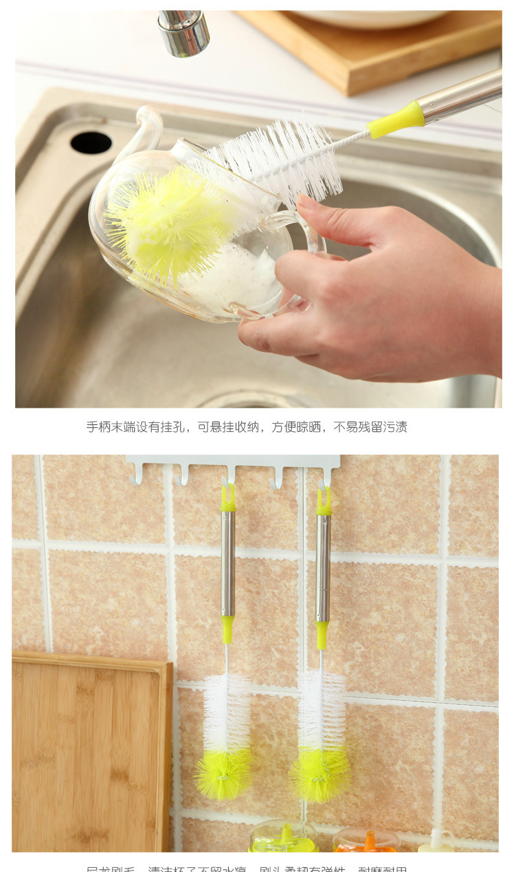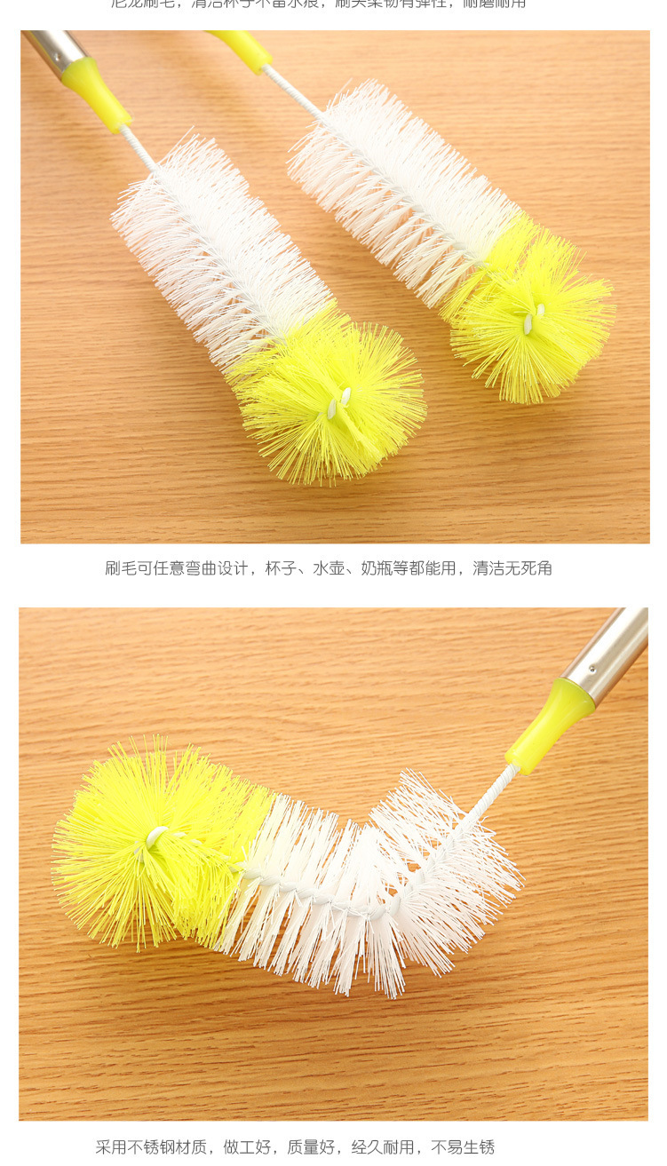 长柄杯刷刷子尼龙刷毛彩色圆头可弯曲杯刷不锈钢手柄洗杯刷清洁刷