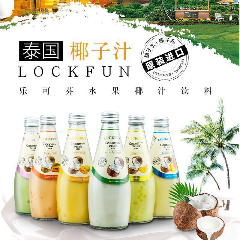批发泰国原装进口乐可芬椰子汁LOCKFUN椰肉果汁饮料290ml