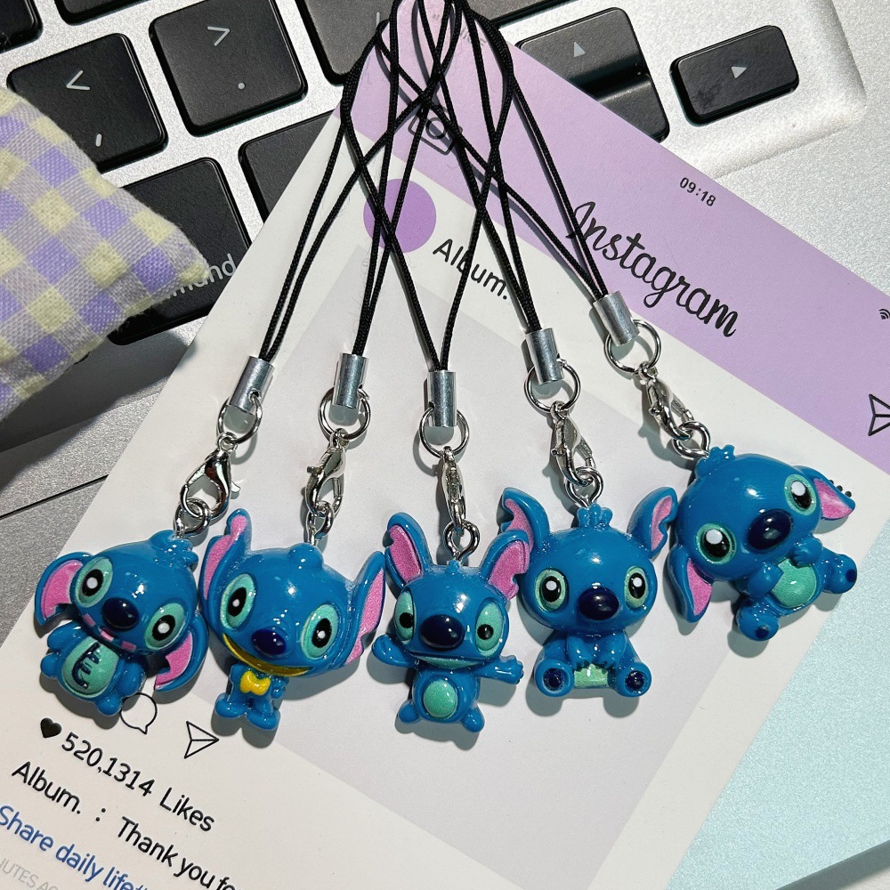 卡通可爱史迪仔手机绳链挂件钥匙扣耳机挂饰包包配饰礼物情侣挂件