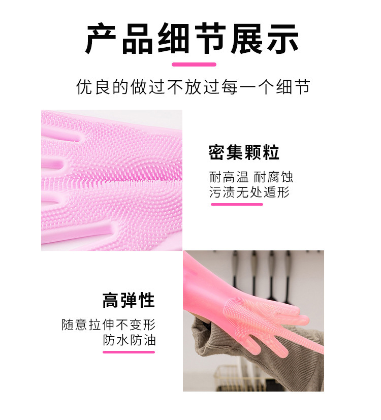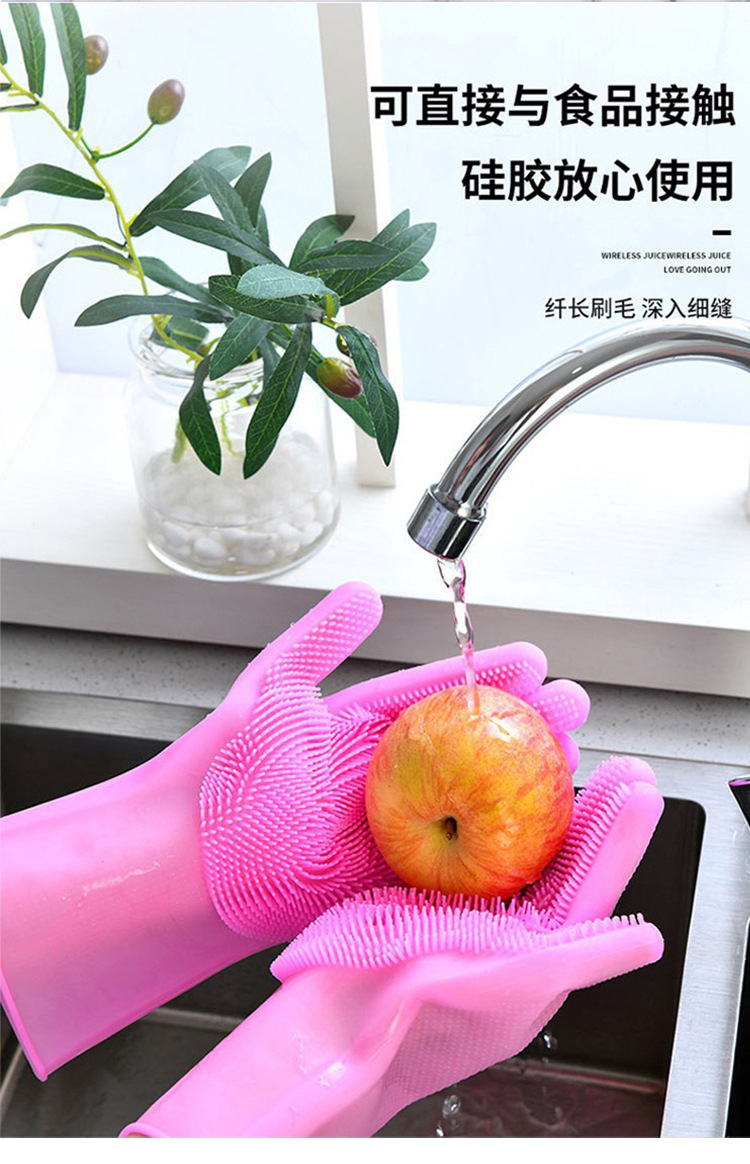 跨境热销硅胶手套洗碗手套男女家用刷碗厨房清洁神器家务清洁手套