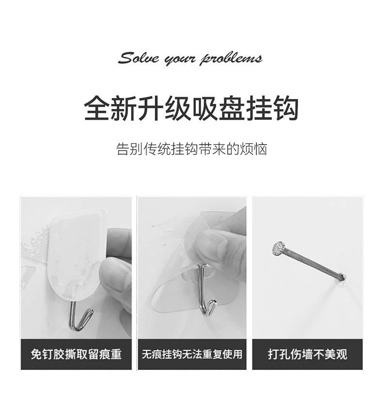 吸盘挂钩真空墙壁壁挂强力吸盘厨房挂勾无痕卫生间门后免打孔粘钩