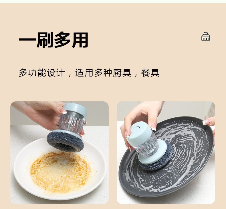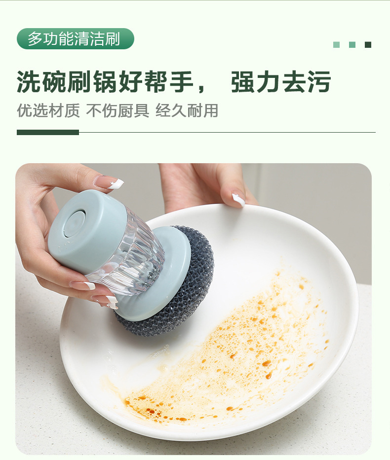 厨房手动加液洗碗刷锅刷懒人按压式洗锅刷PPE球清洁刷