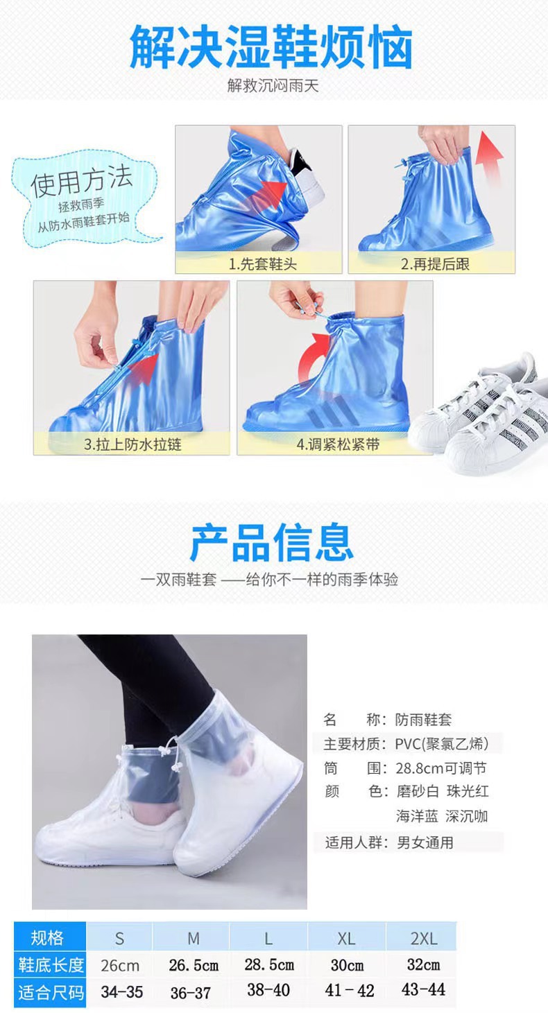 跨境防雨鞋套户外防水防滑成人男女款加厚耐磨PVC雨靴中筒雨鞋套