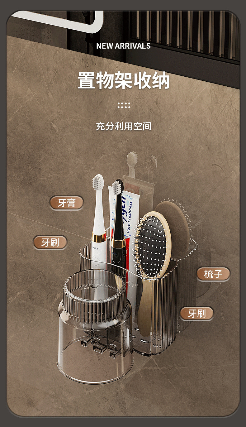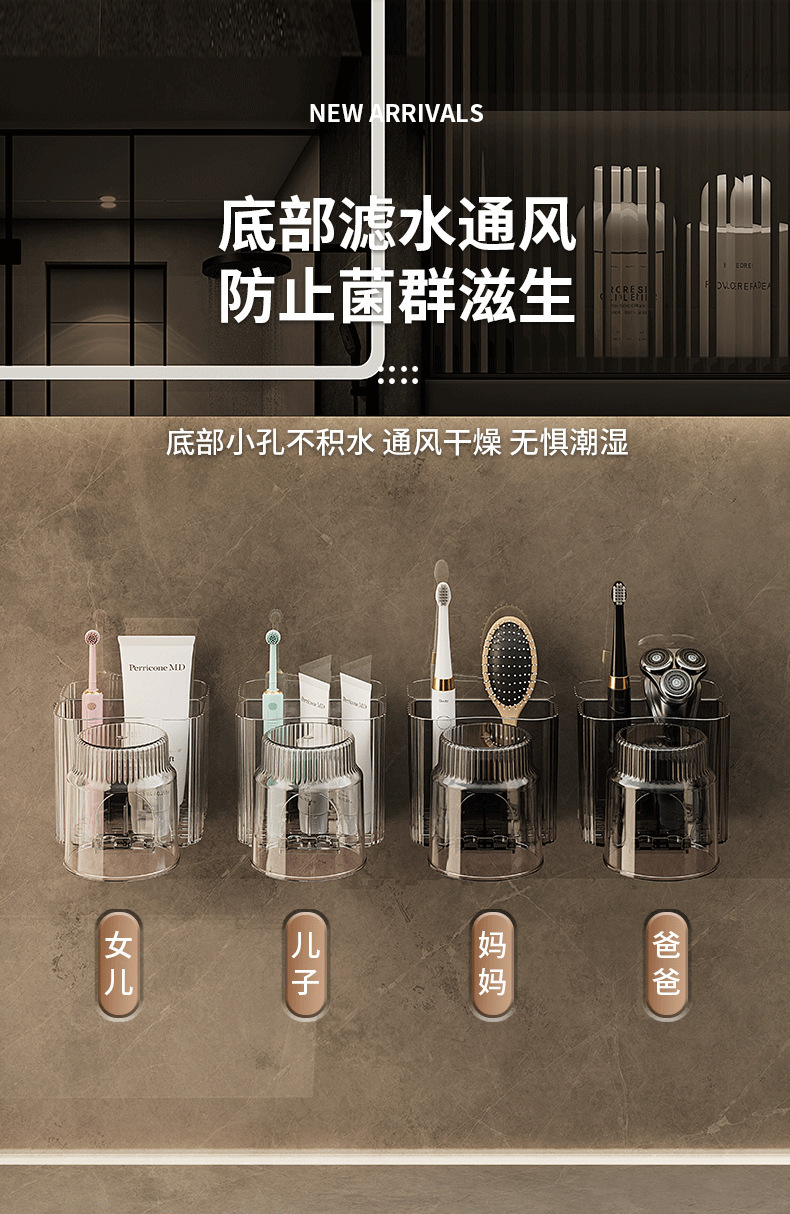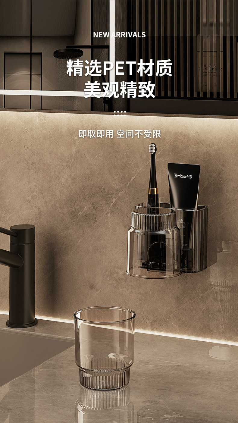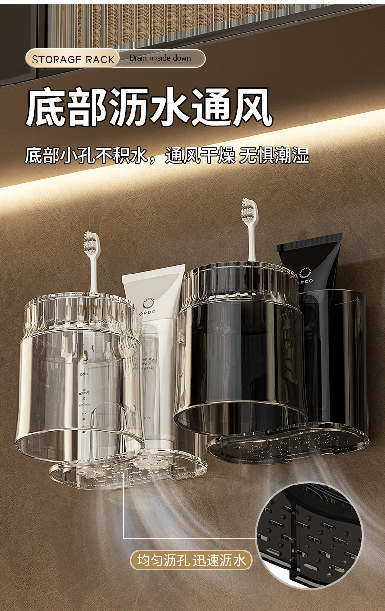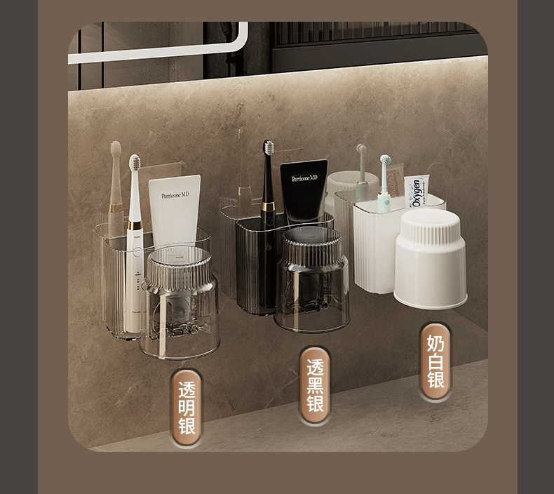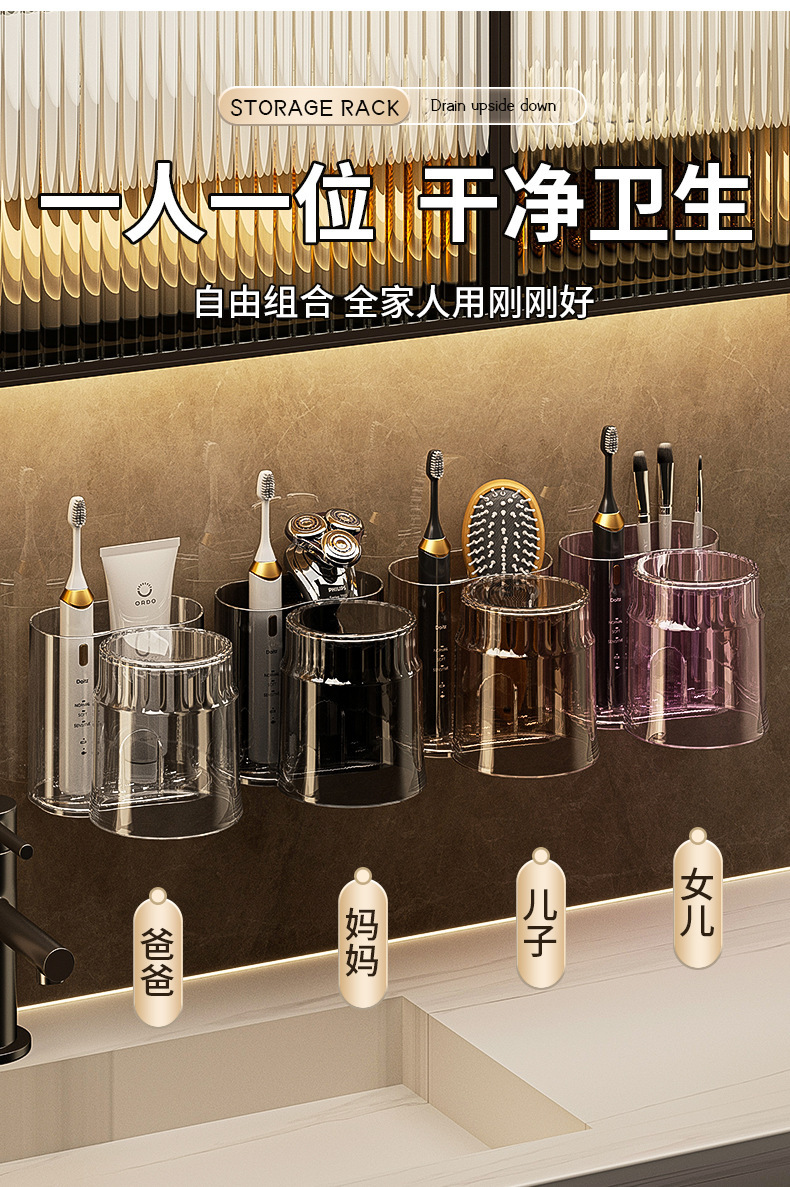 牙刷架漱口杯免打孔置物架牙杯牙刷架刷牙杯卫生间牙刷杯架壁挂式