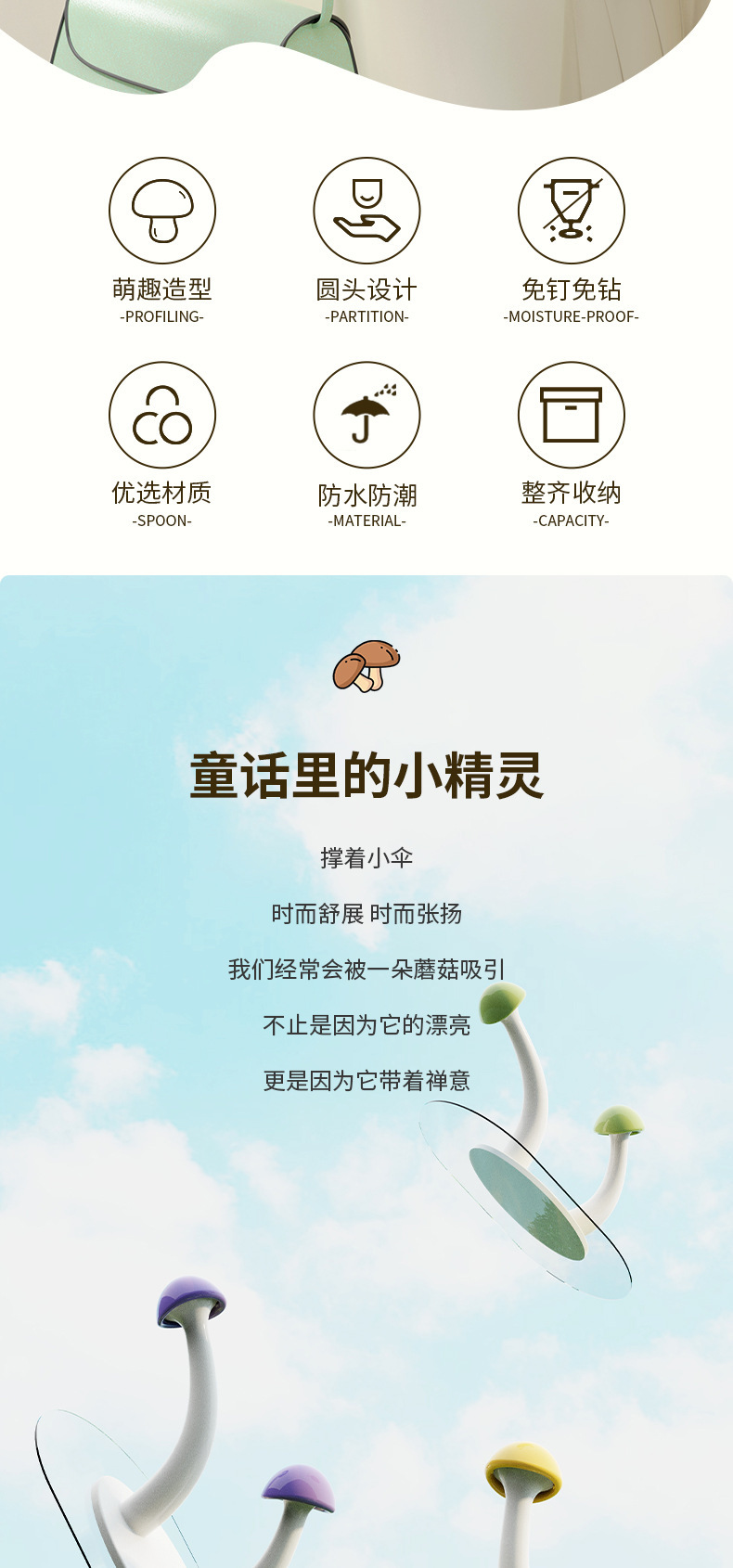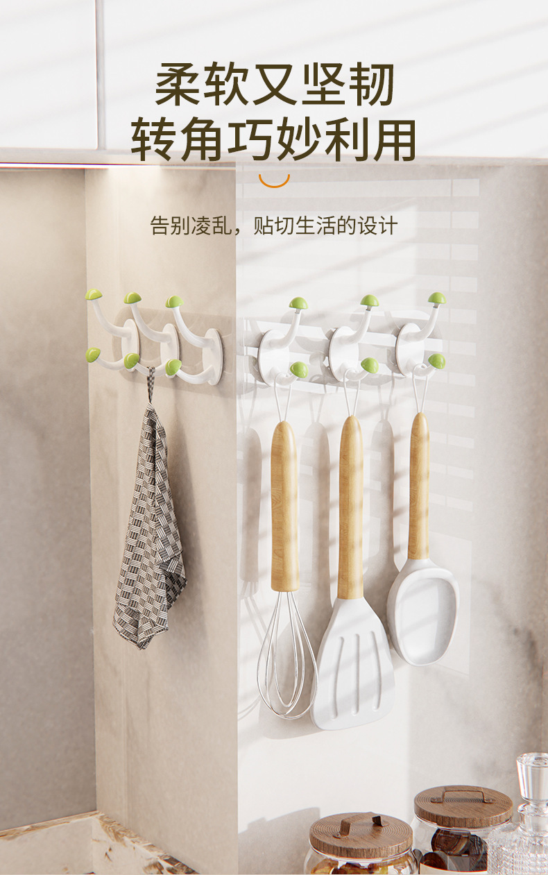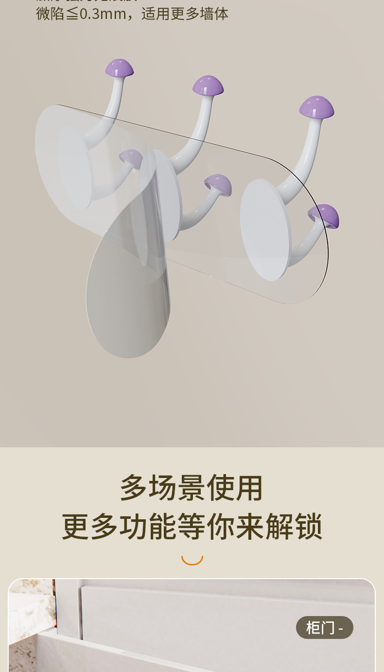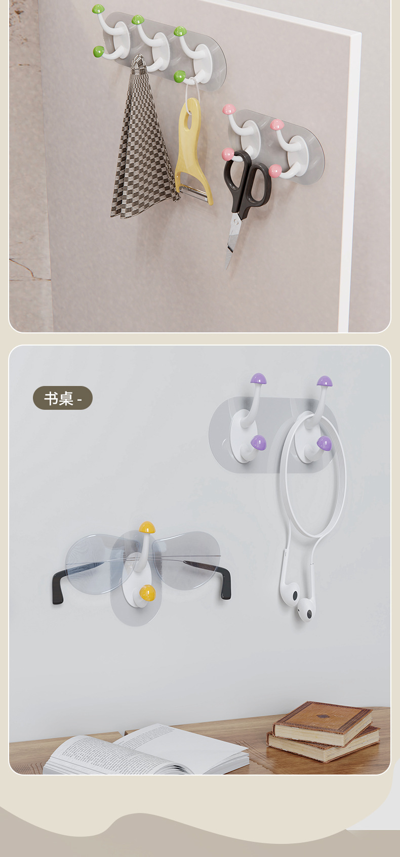 跨境免打孔无痕强力创意卡通蘑菇挂钩粘钩一排挂衣钩