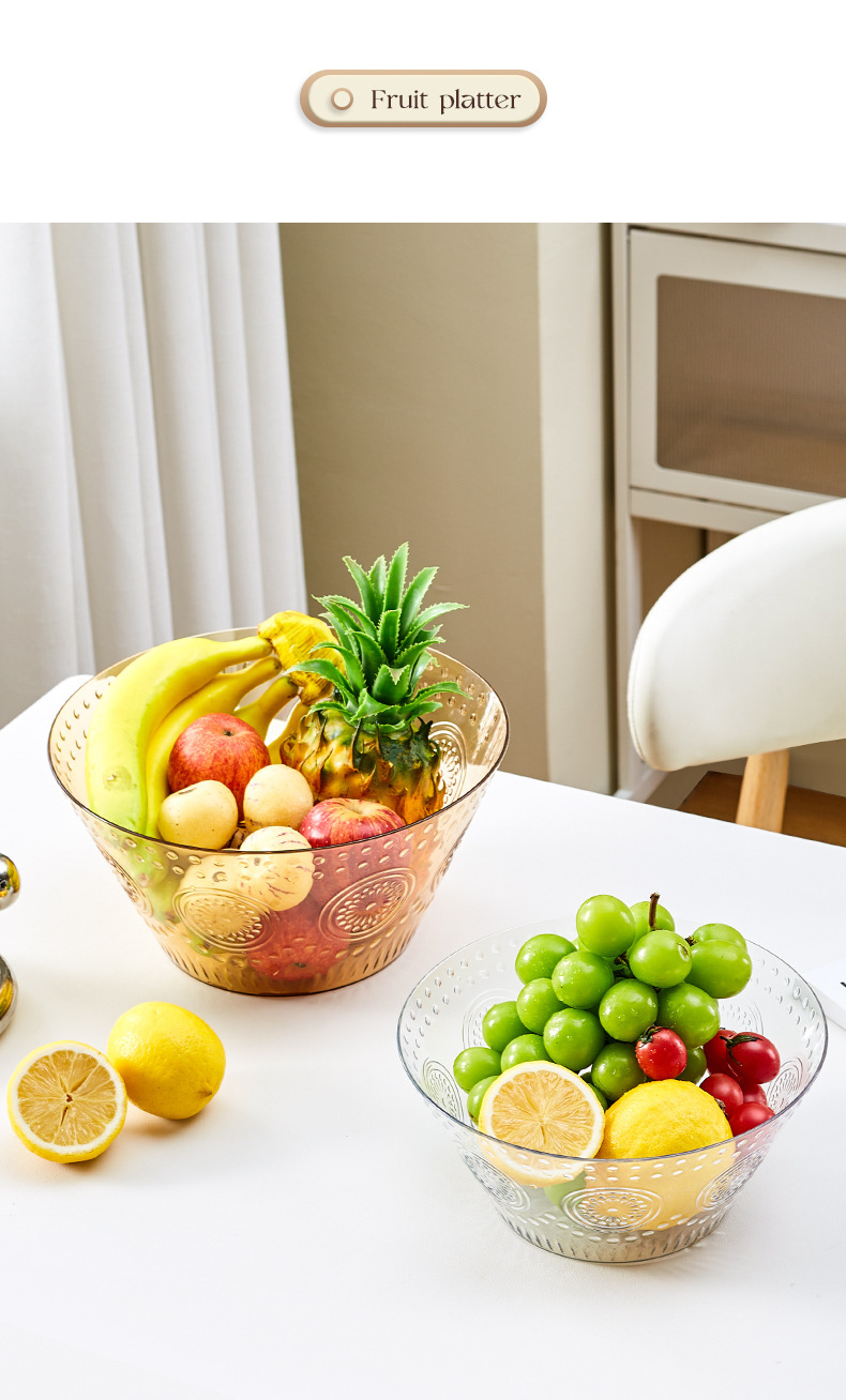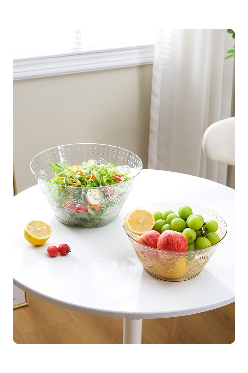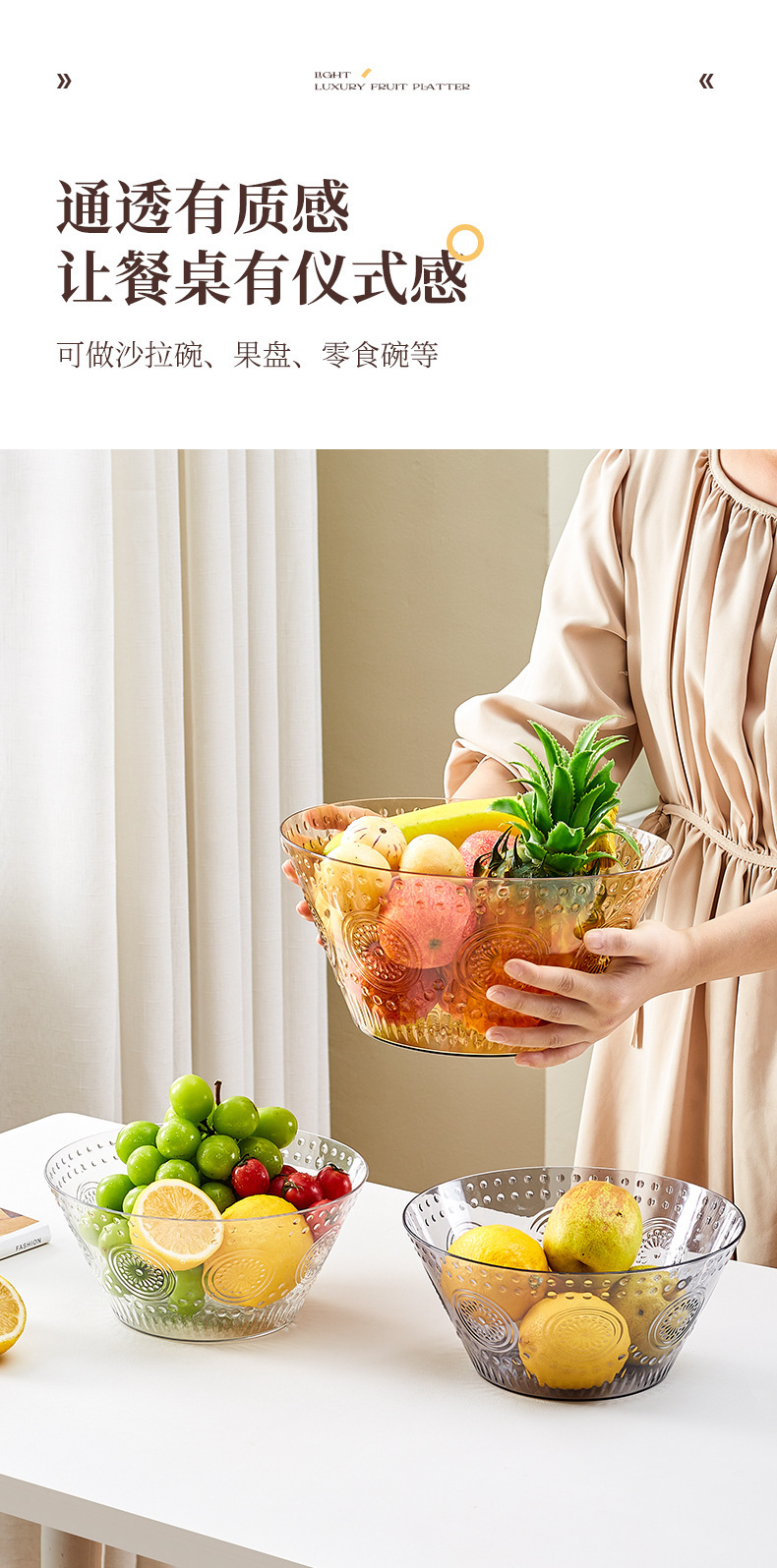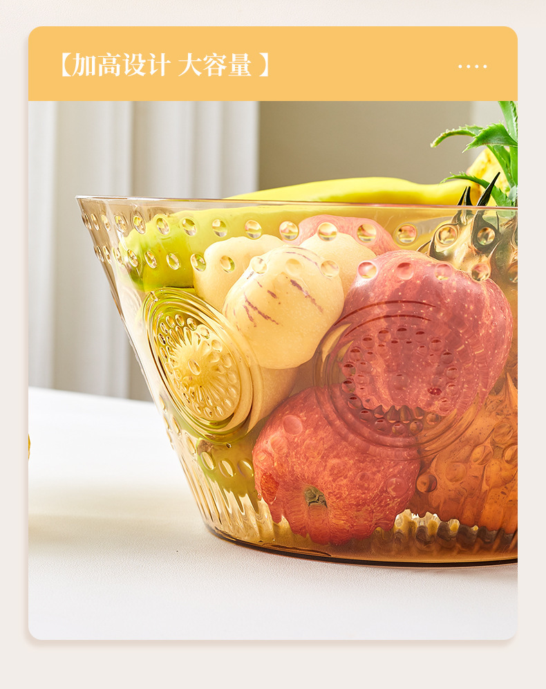花纹金边透明PET碗沙拉碗家用碗水果零食凉菜碗水果盘收纳盘