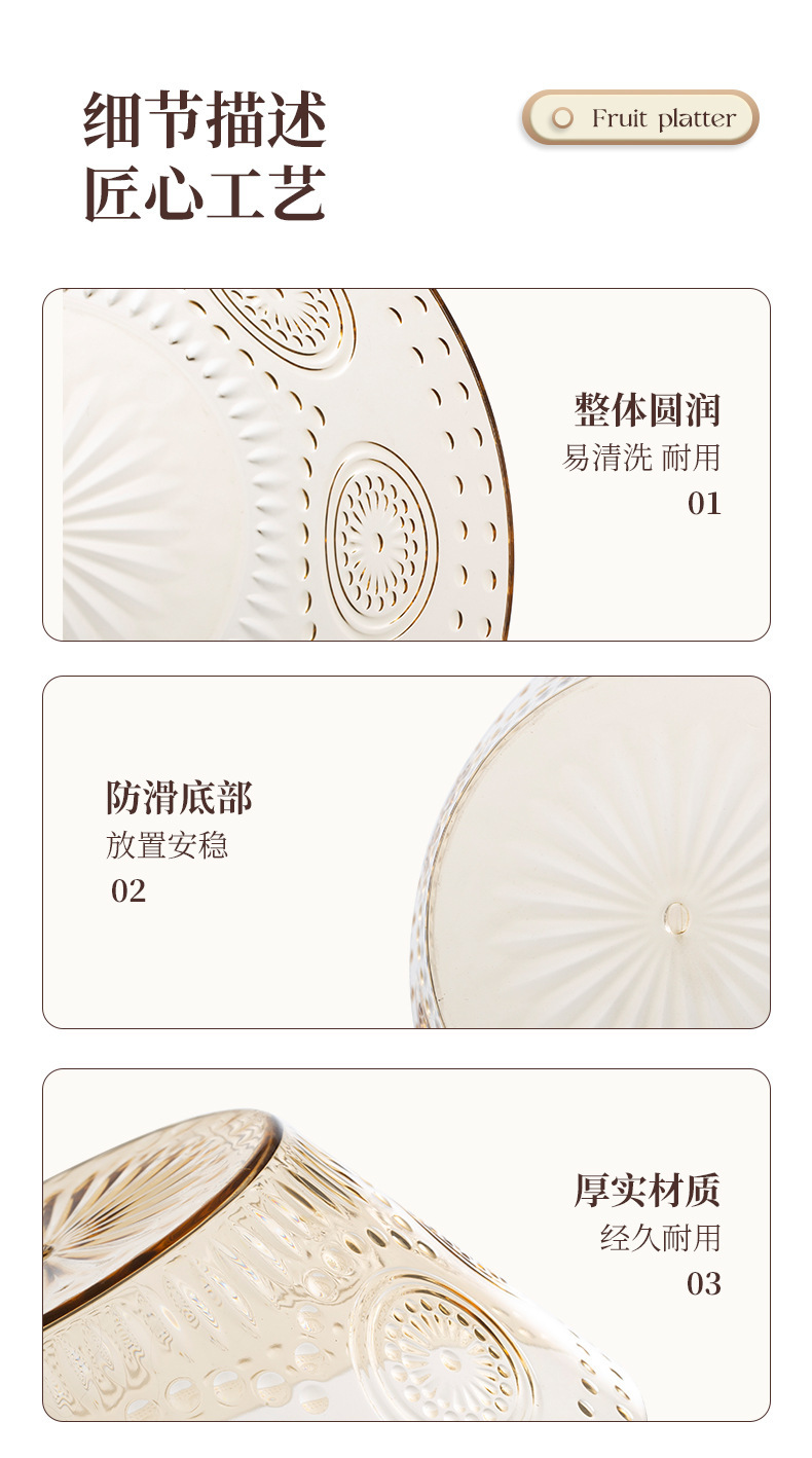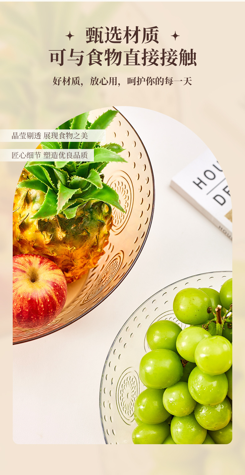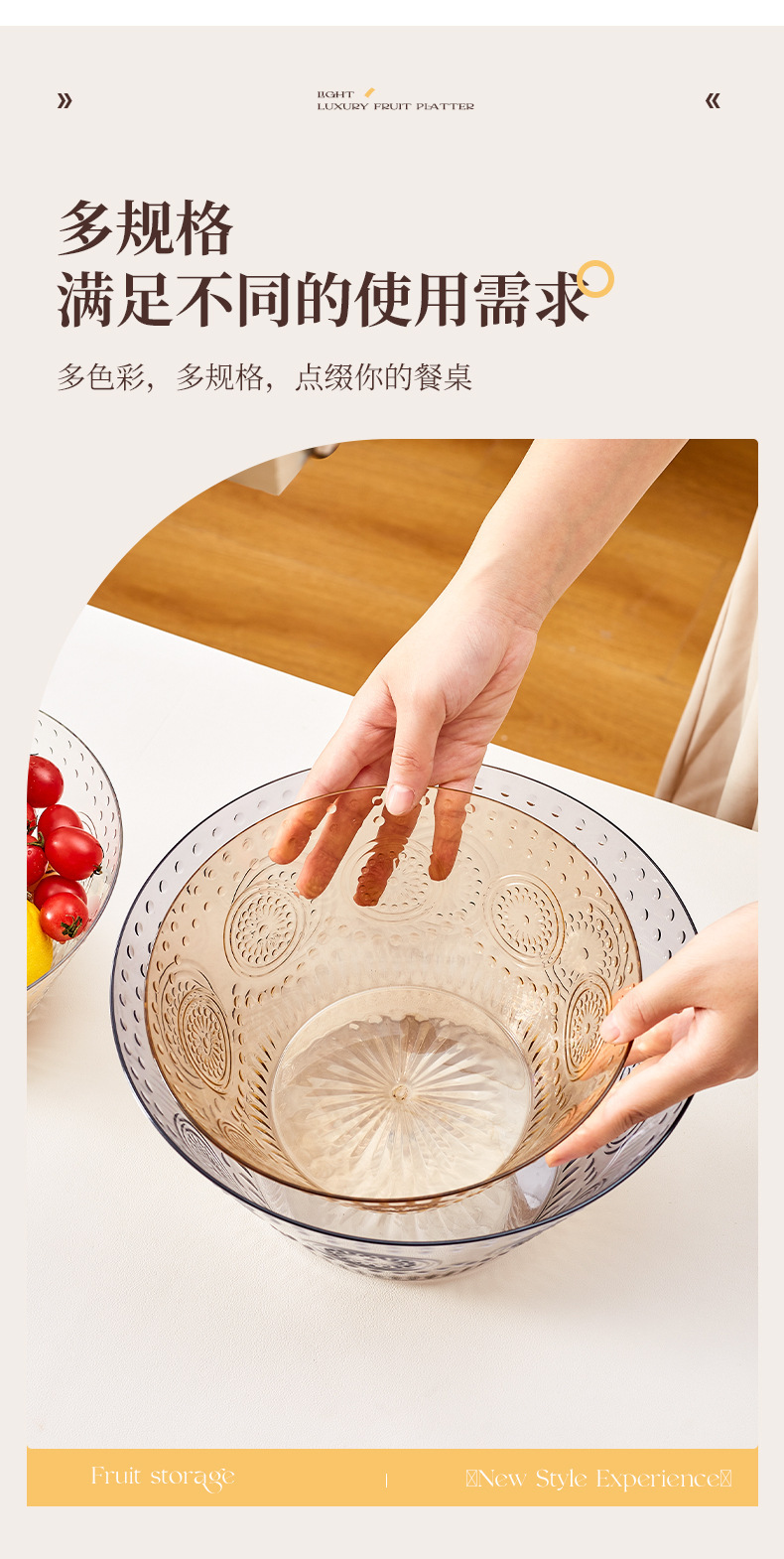 花纹金边透明PET碗沙拉碗家用碗水果零食凉菜碗水果盘收纳盘