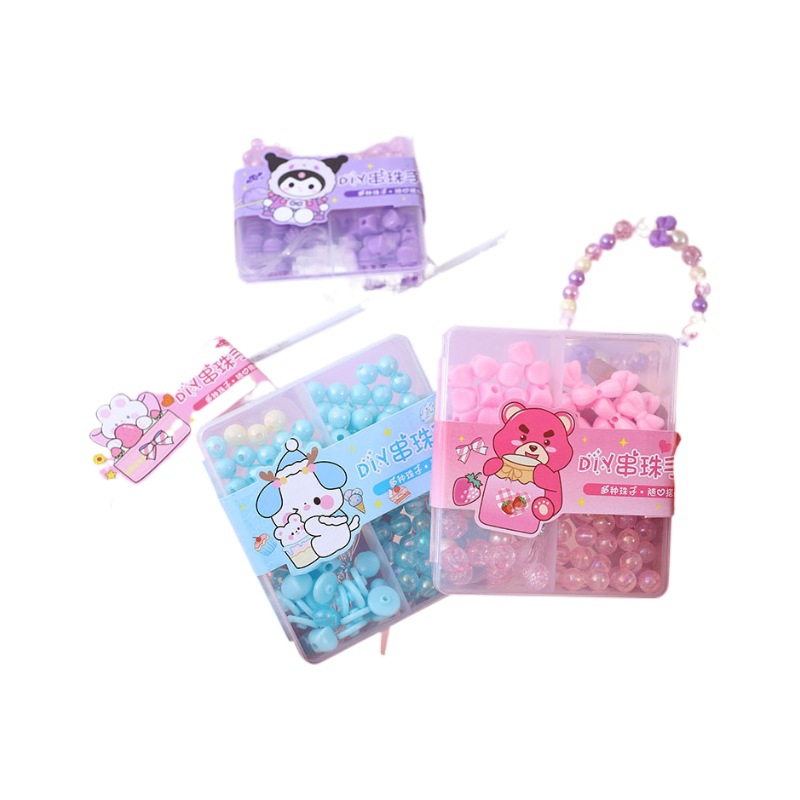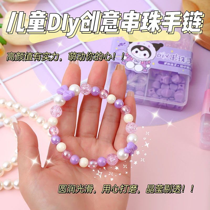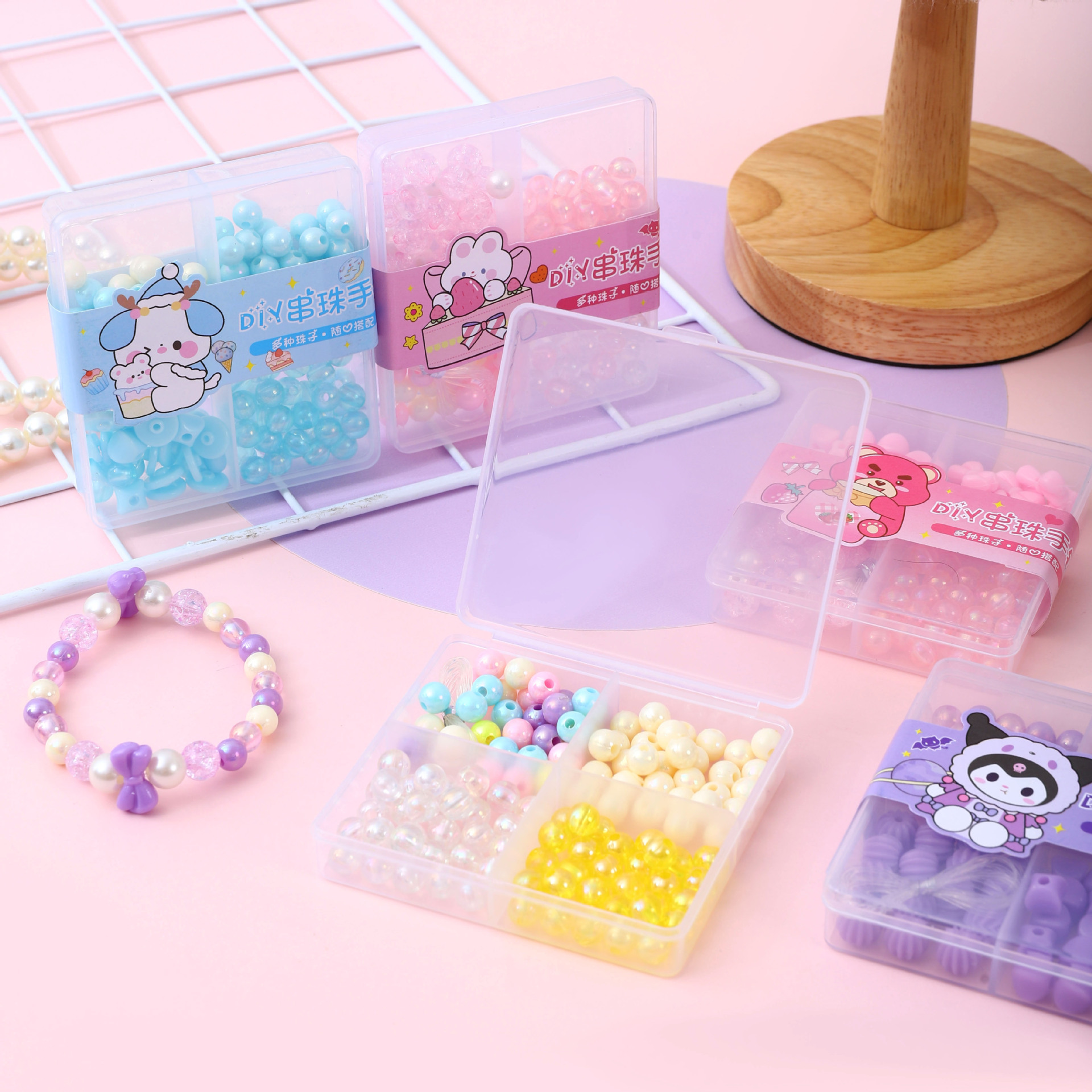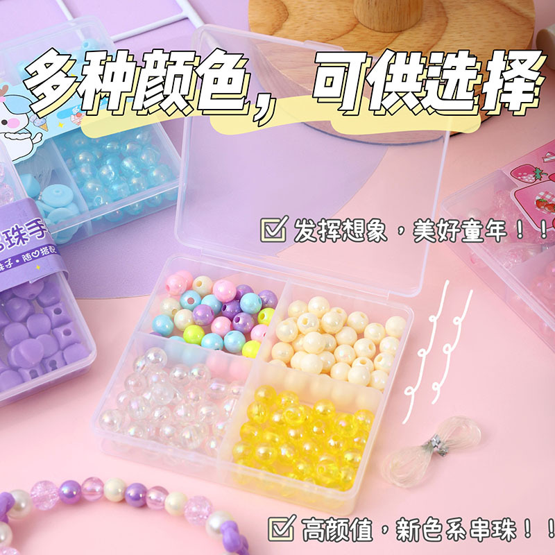 儿童亚克力手工穿珠子手链项链4格 手工diy益智玩具饰品礼物批发