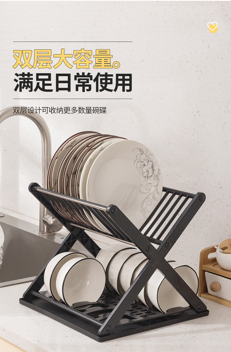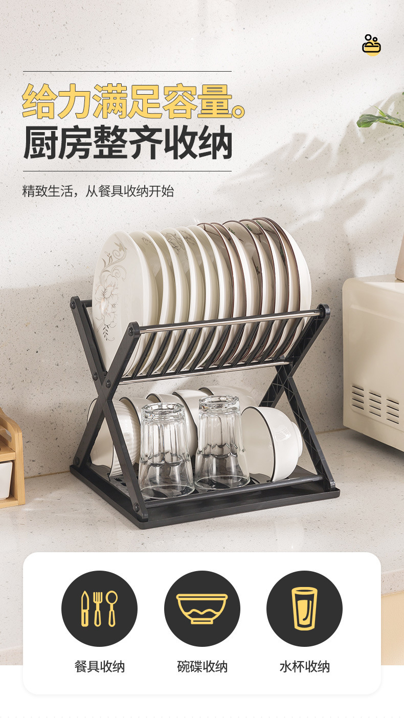 新款一体带沥水盘厨房多功能简易碗盘架双层沥水碗架多用收纳架