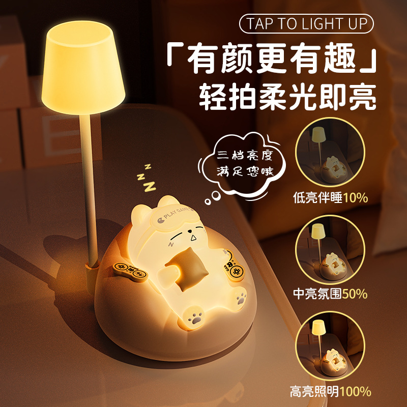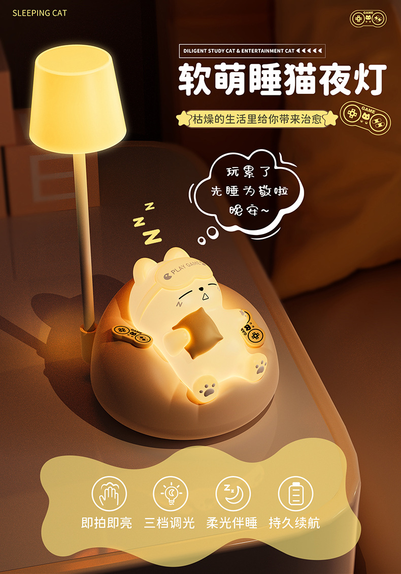 学习灯软萌睡猫夜灯USB充电卧室伴睡小夜灯婴儿起夜喂奶床头台灯