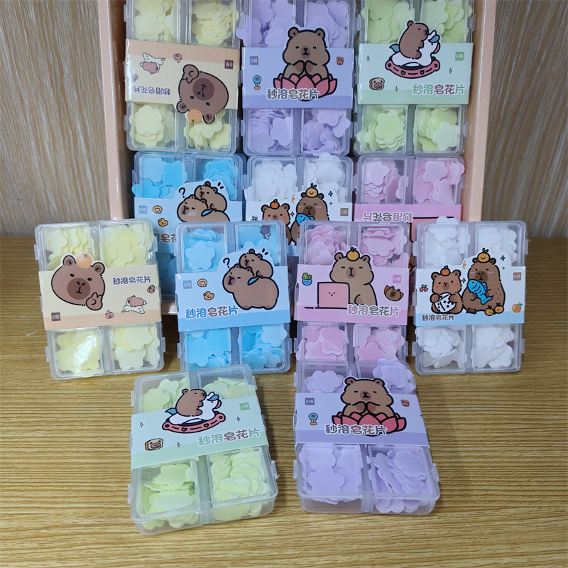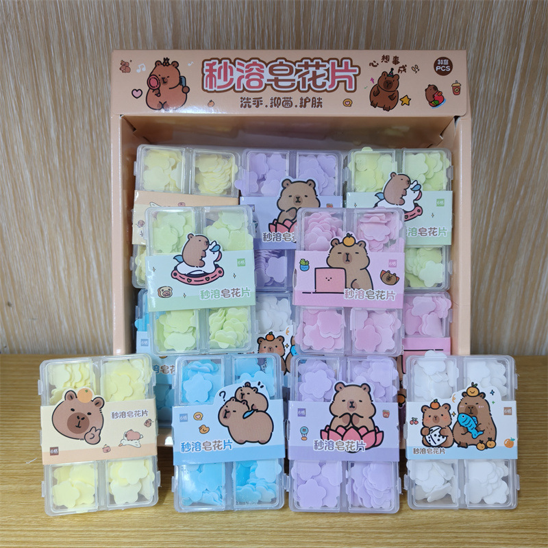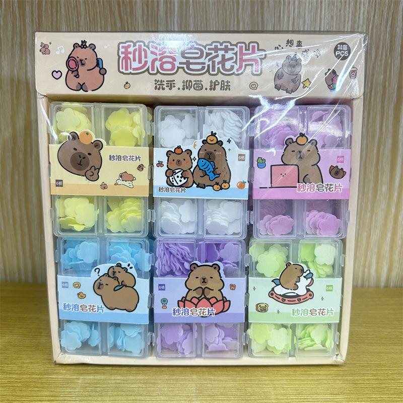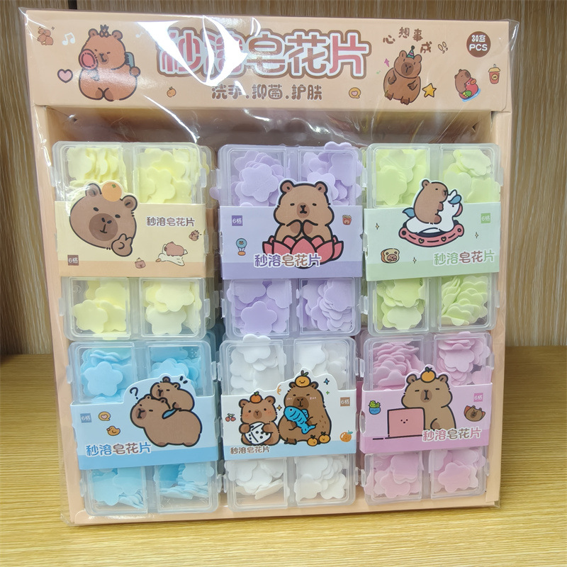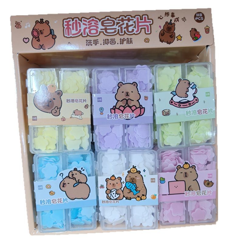跨境儿童卡皮巴拉6格皂花片彩色洗手片豚豚崽秒溶香皂花礼品