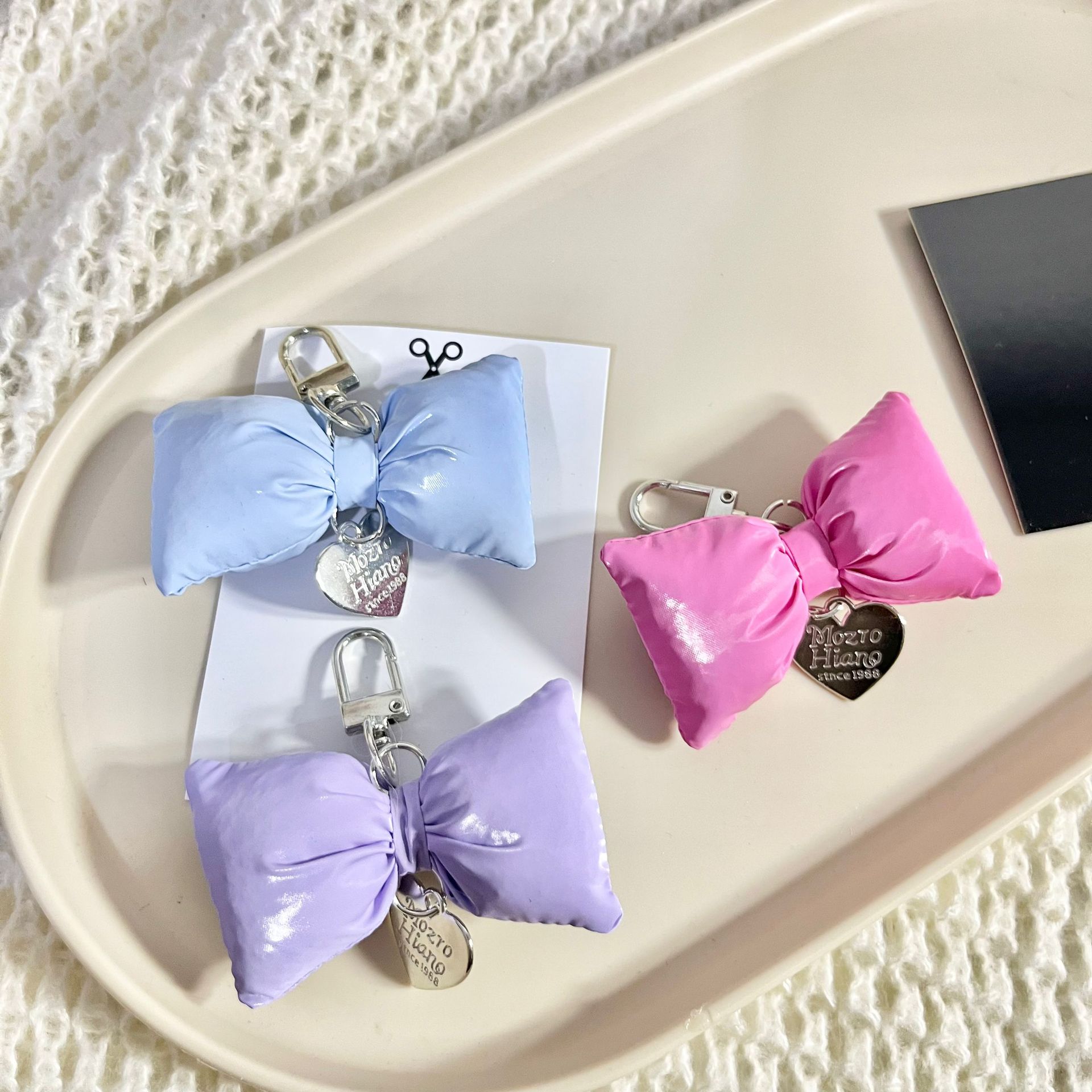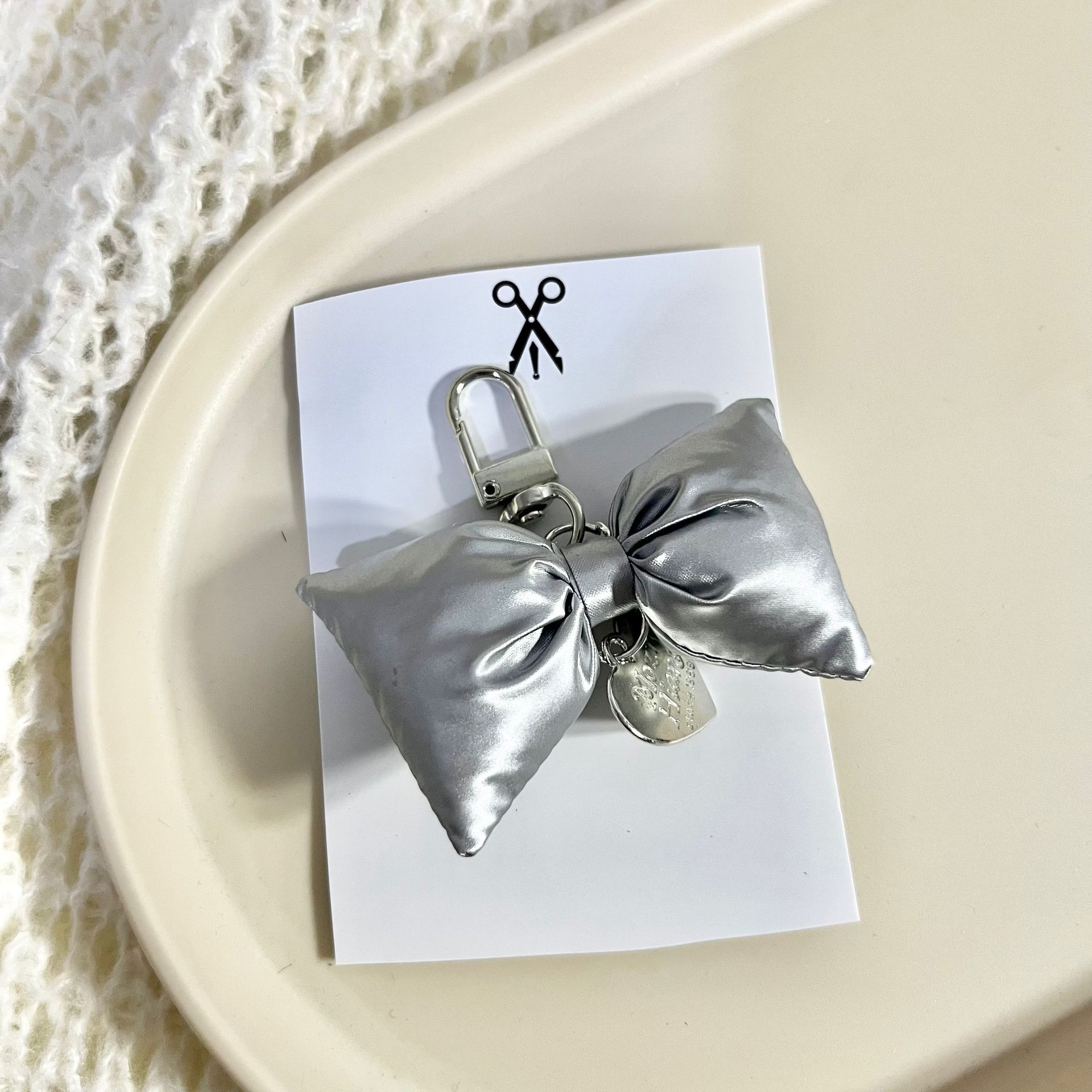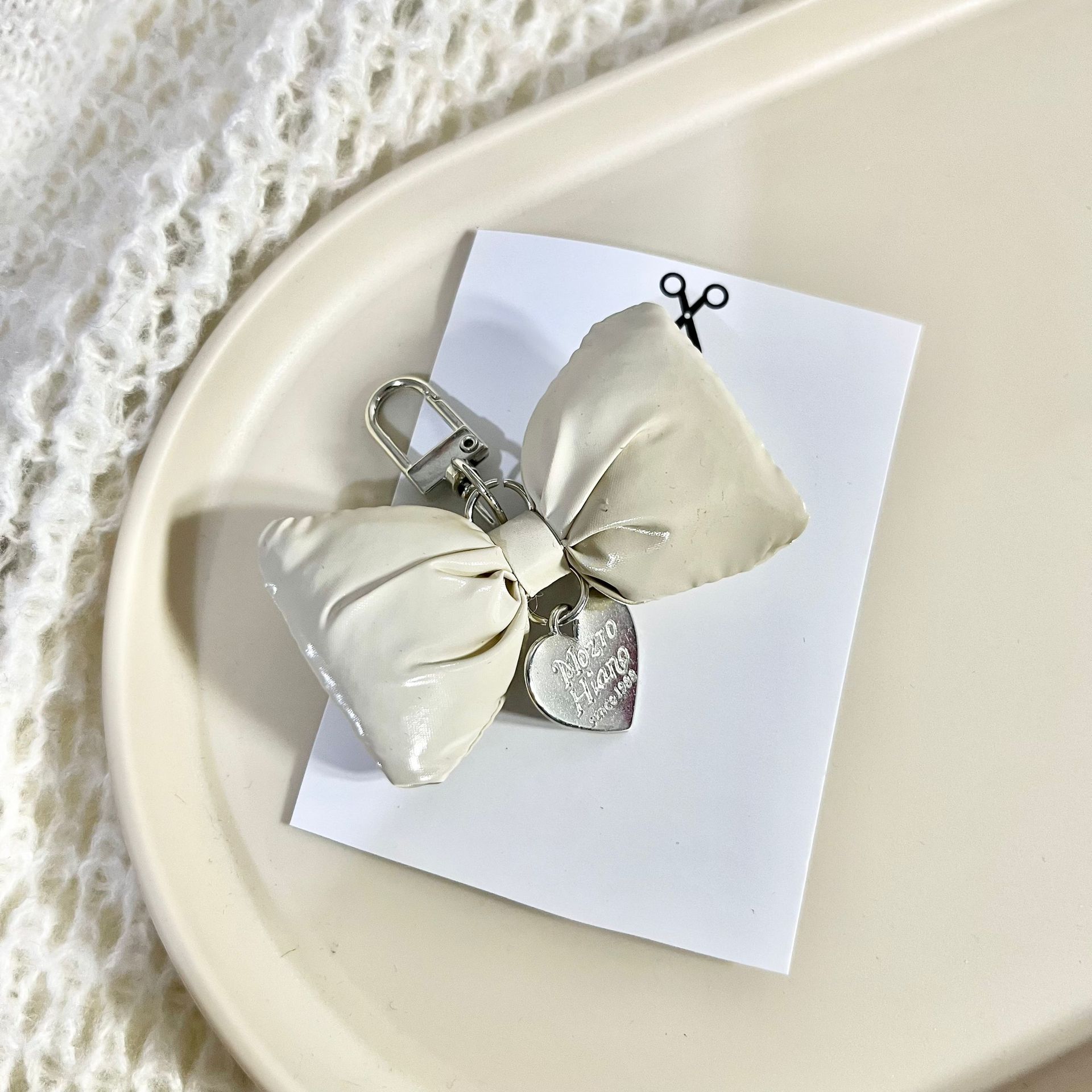 韩版皮革充棉蝴蝶结银色爱心车钥匙扣ins甜美包挂饰装饰挂件配饰