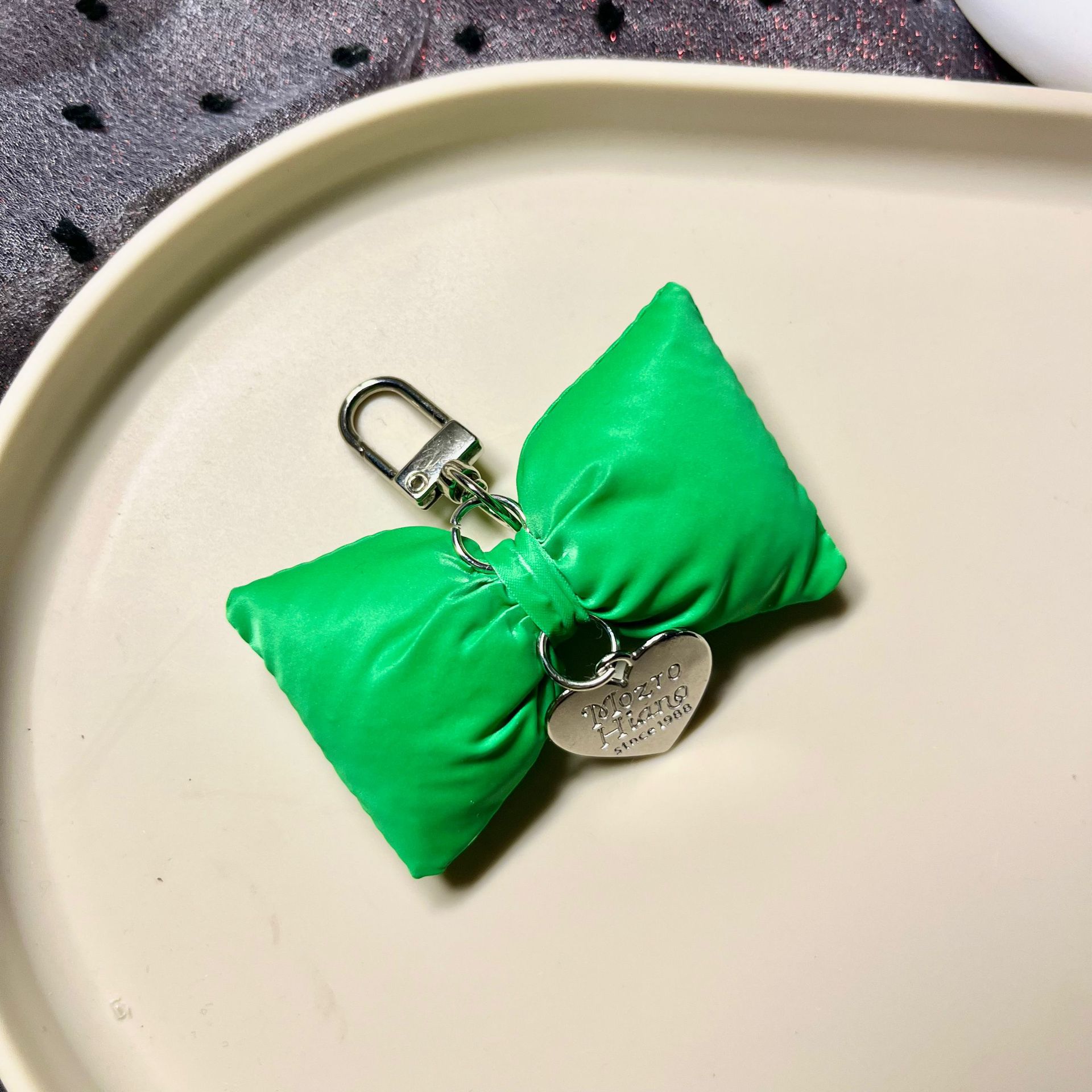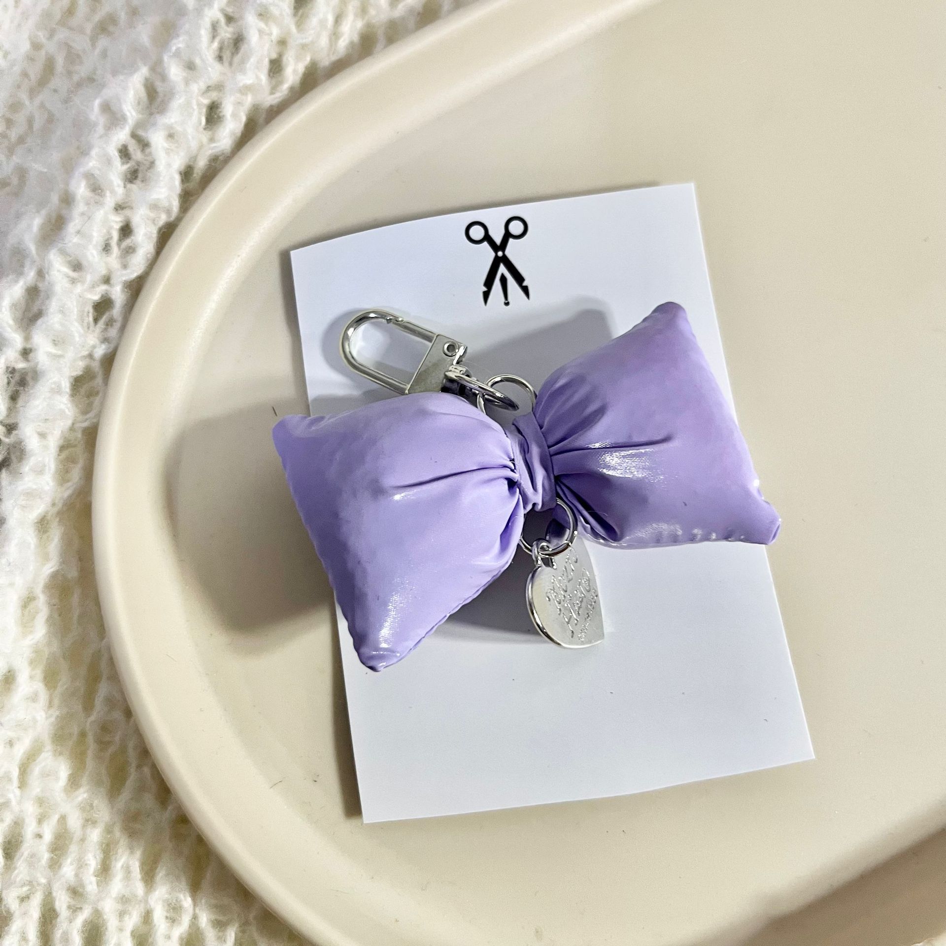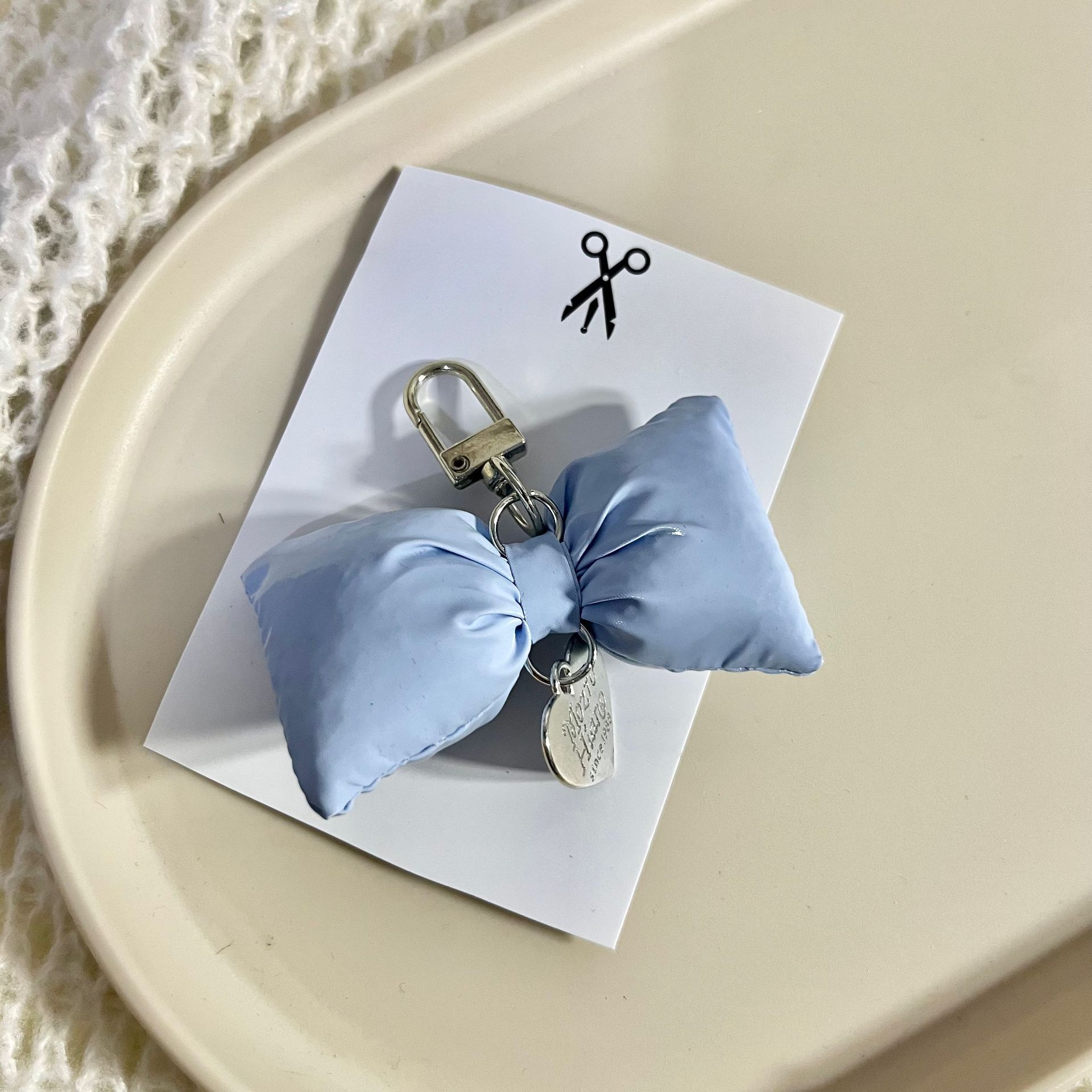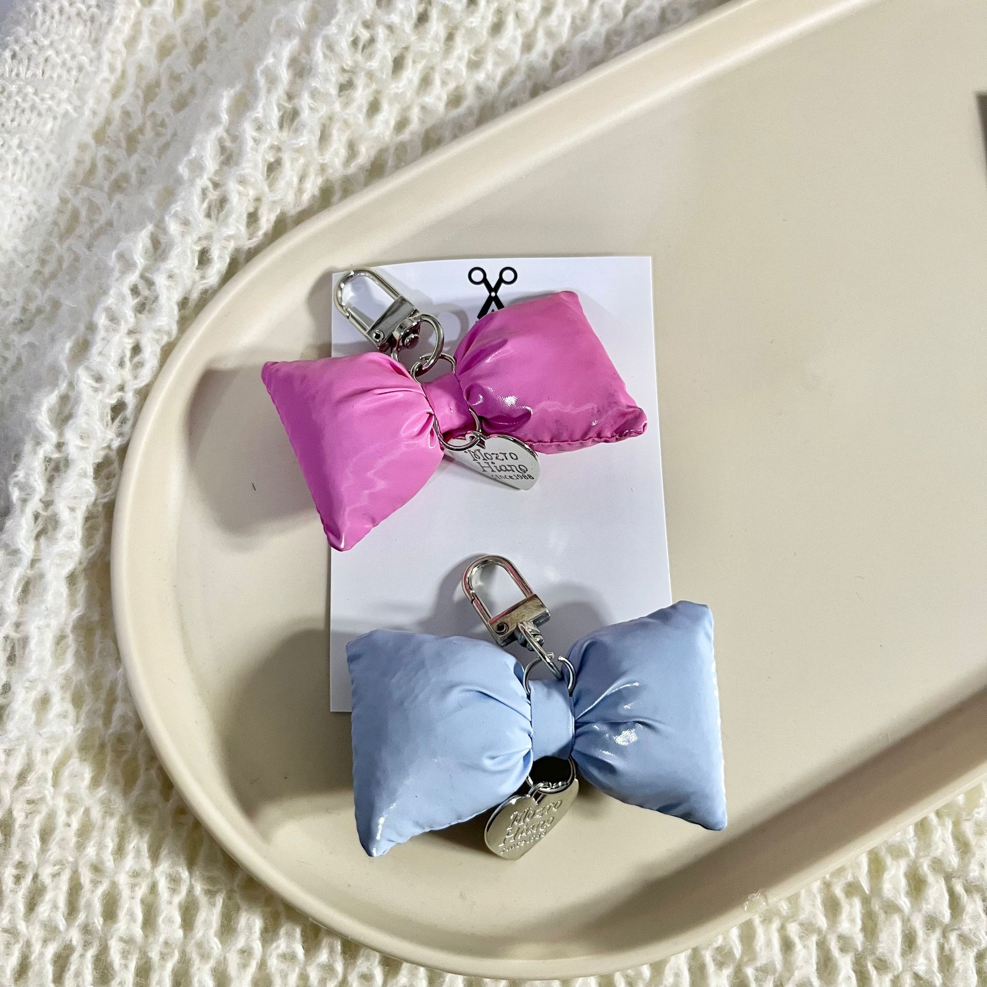韩版皮革充棉蝴蝶结银色爱心车钥匙扣ins甜美包挂饰装饰挂件配饰