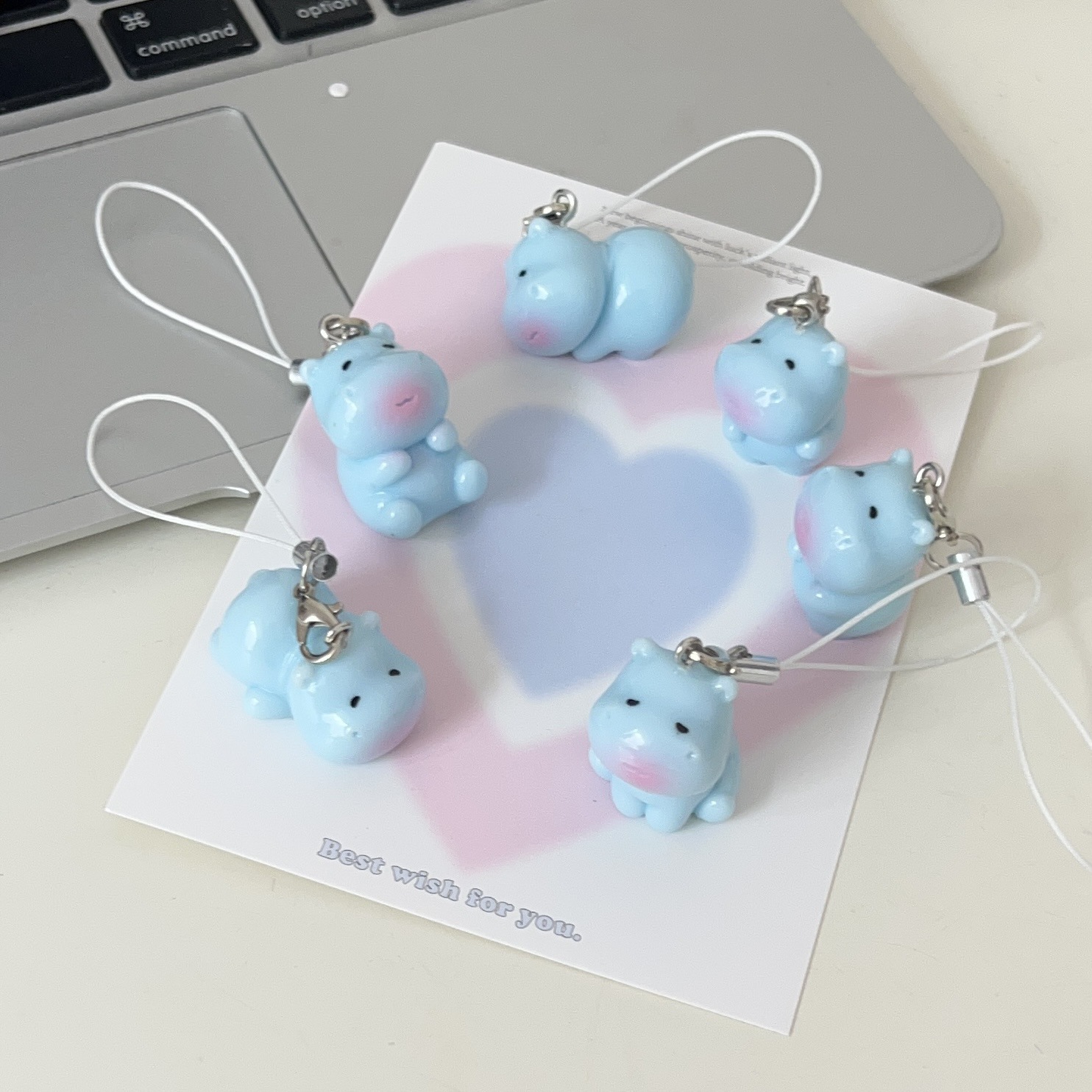 卡通立体晒红河马手机绳钥匙扣趣味少女心包包挂件情侣闺蜜礼物饰