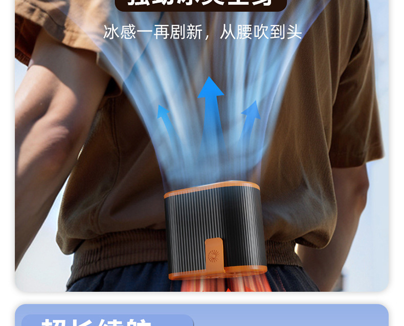 户外露营降温神器冰敷感挂腰工地爆款便携随身超续航风扇礼品定制