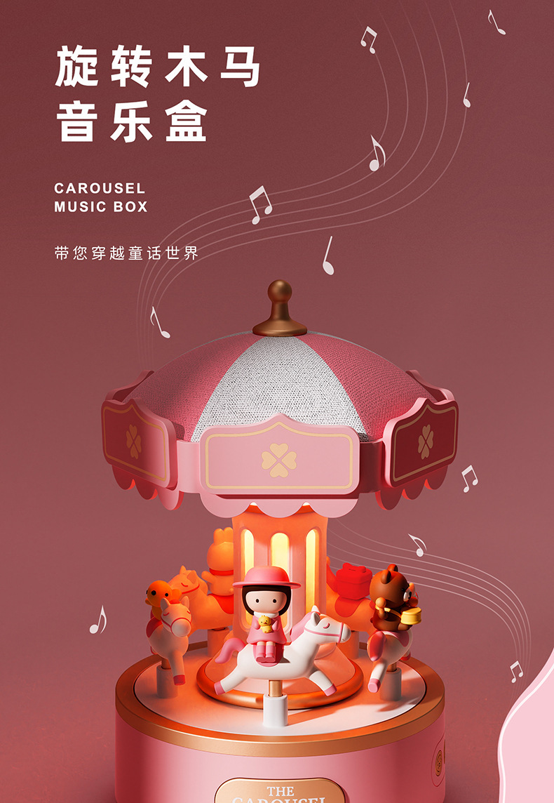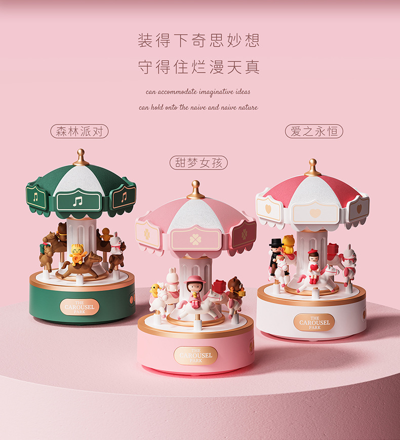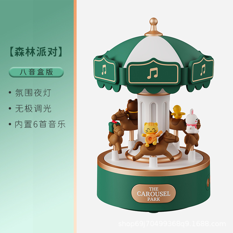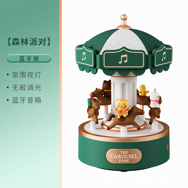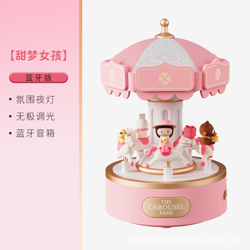 新款创意旋转木马音乐盒蓝牙音响小夜灯女孩生日礼物礼品氛围灯