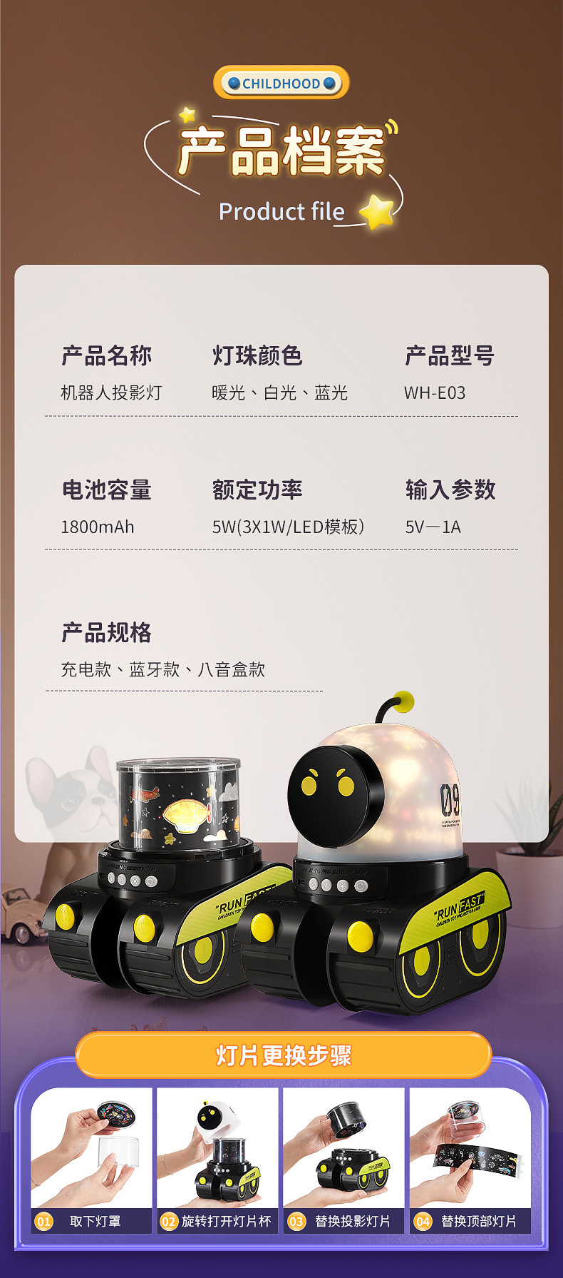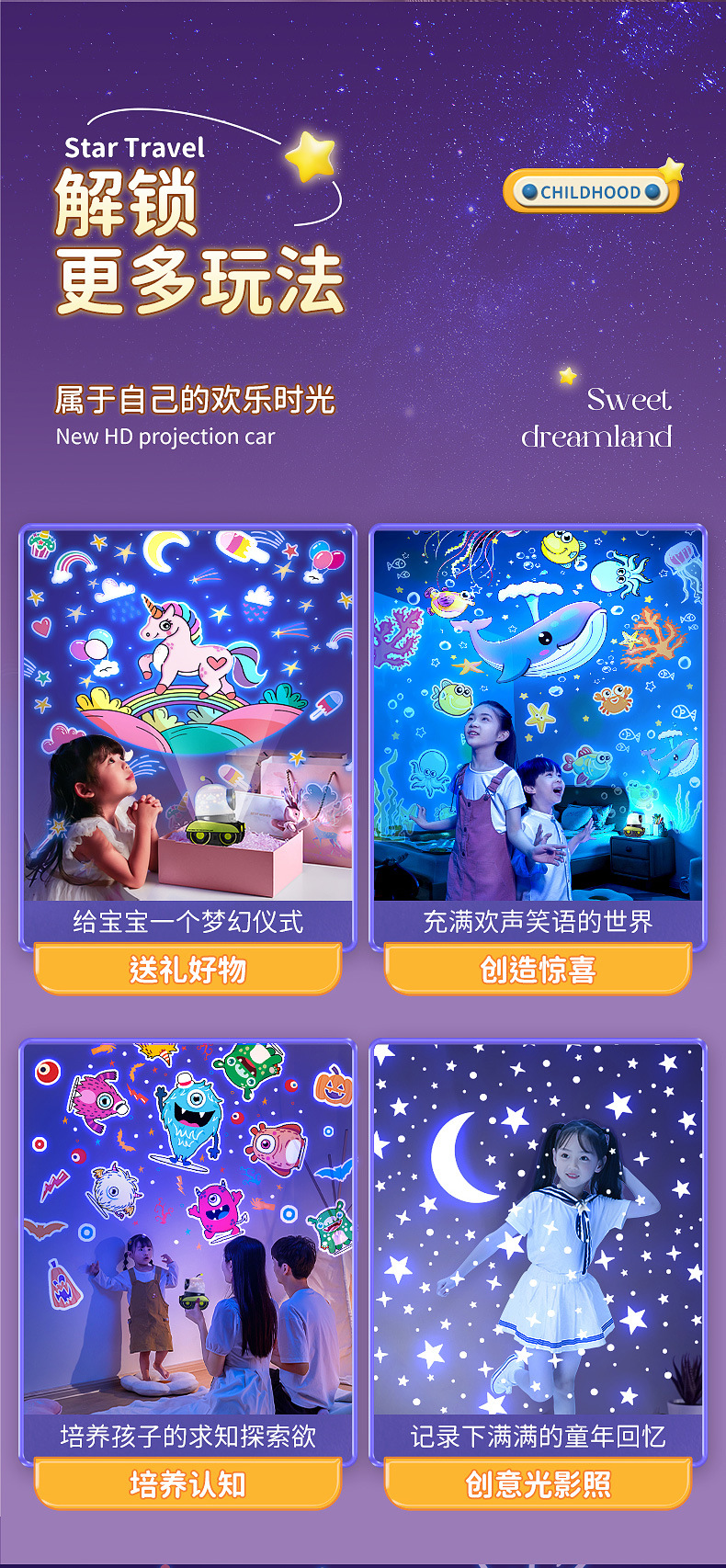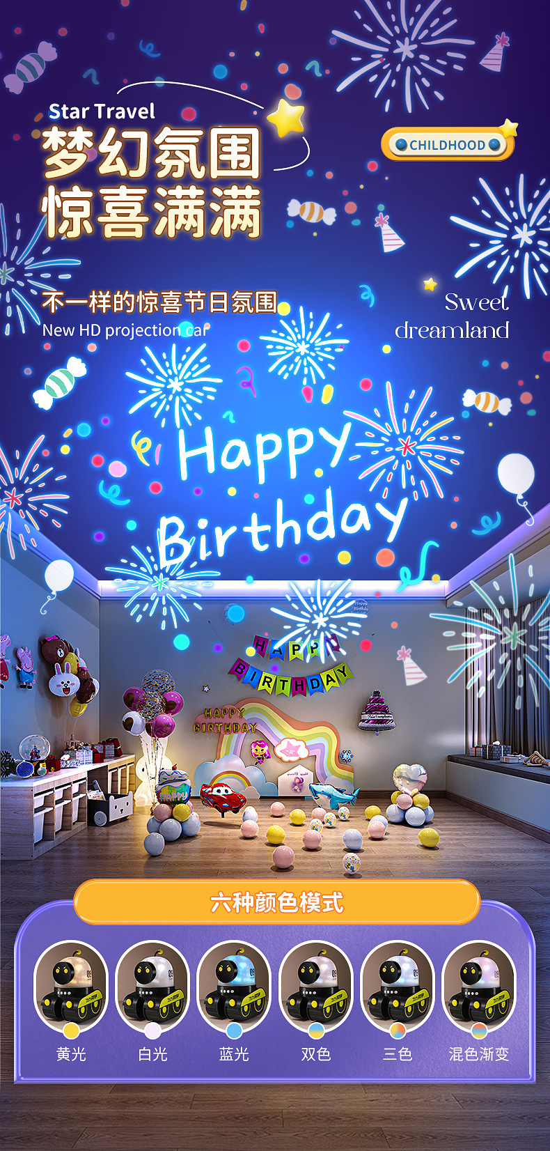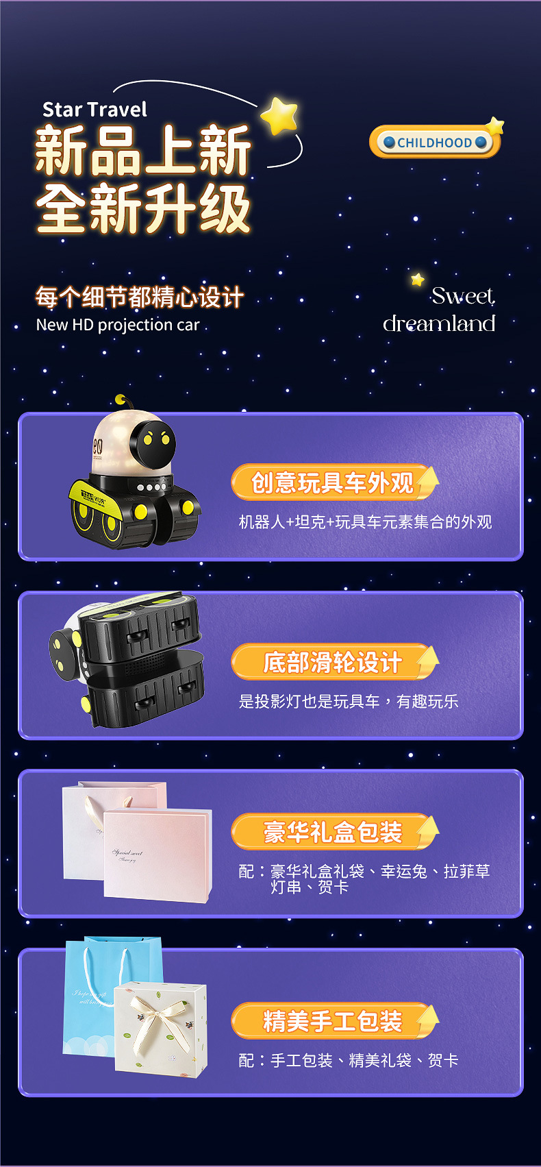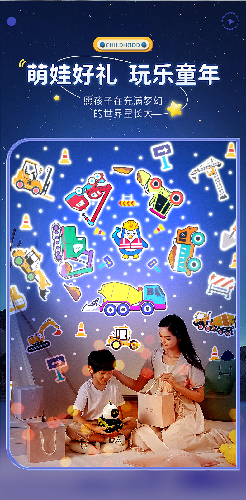 男孩礼物万火机器人星空投影灯创意儿童益智玩具床头伴睡小夜灯