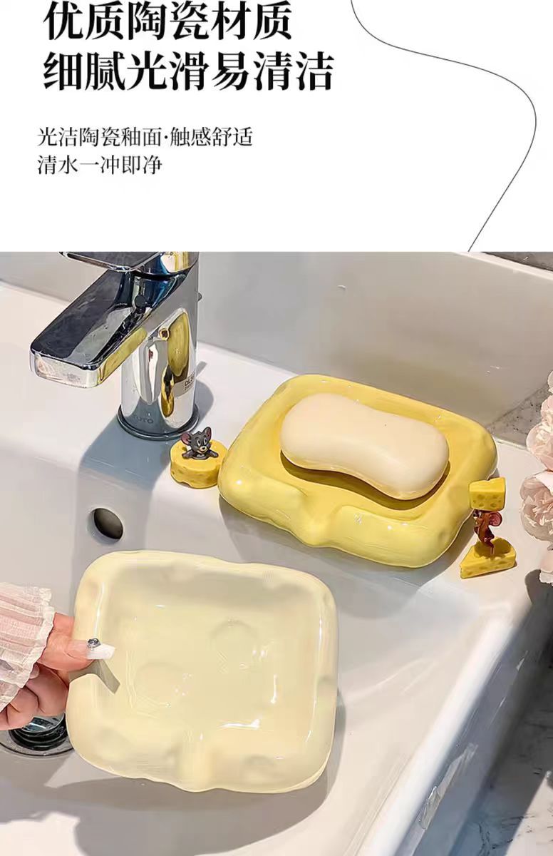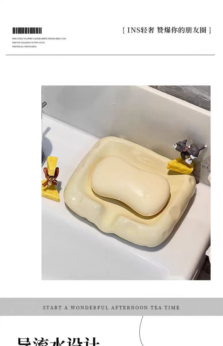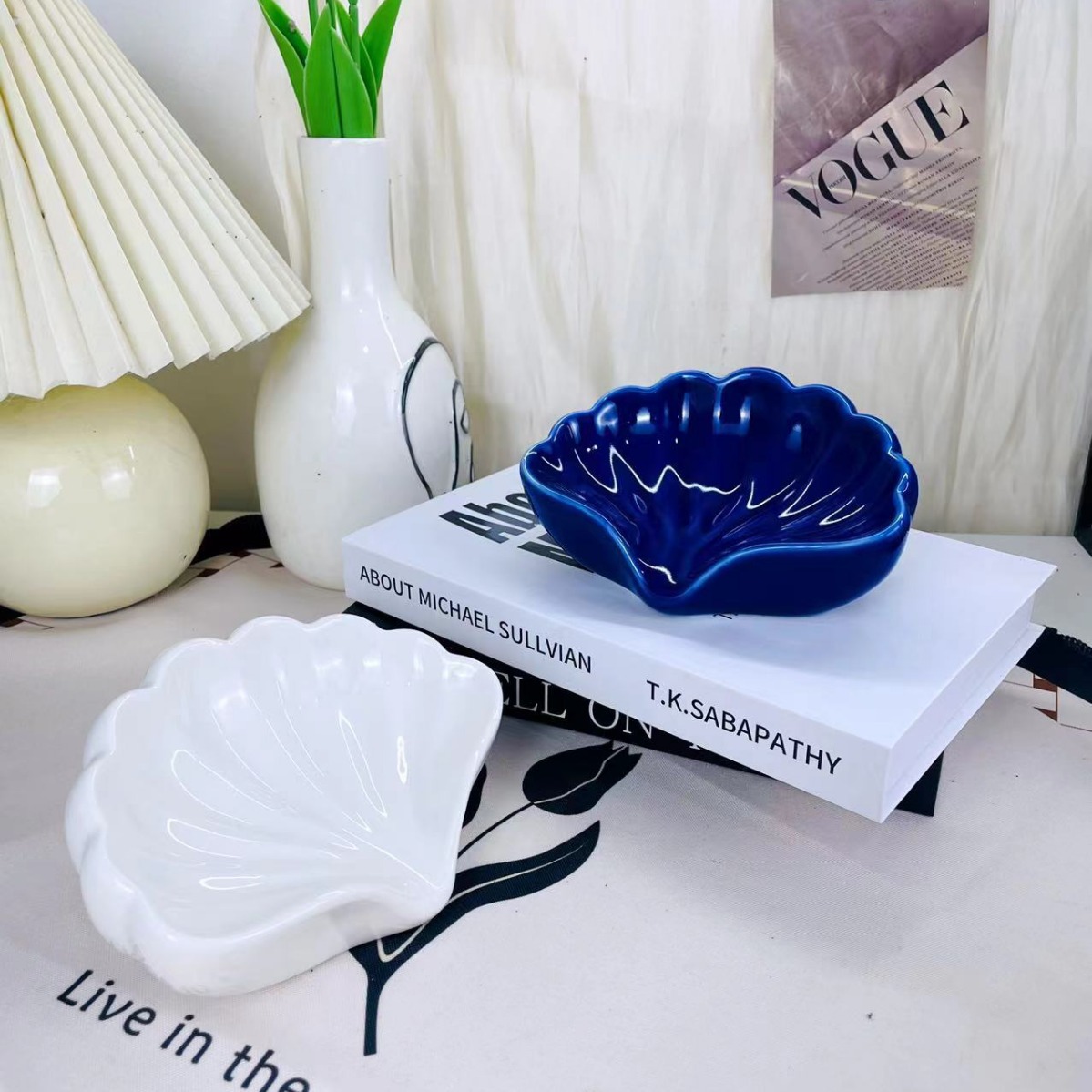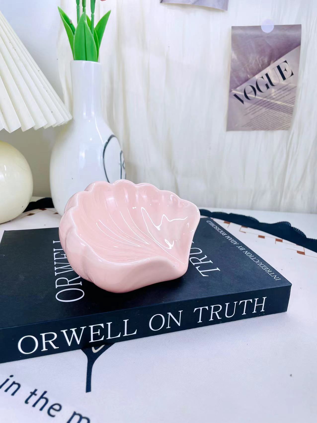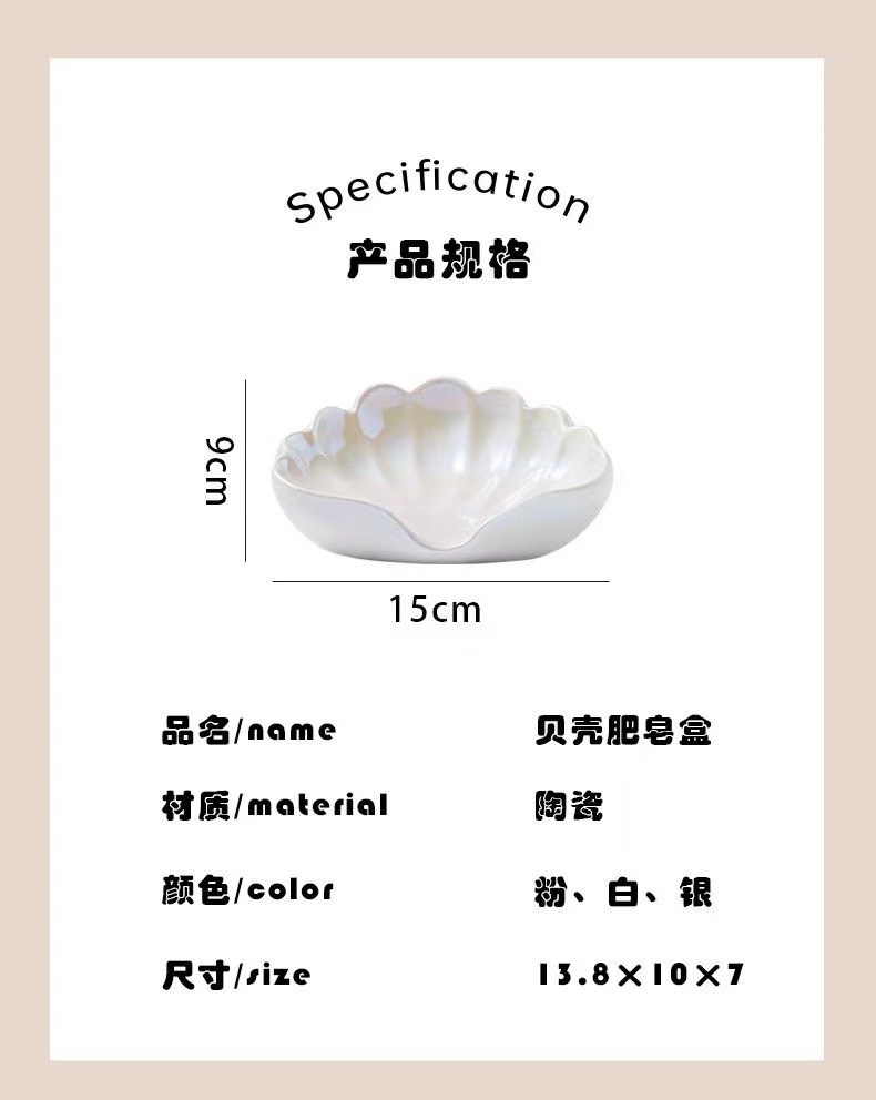 轻奢风创意陶瓷家用香皂盒贝壳沥水肥皂盒高档免打孔皂架伴手礼品