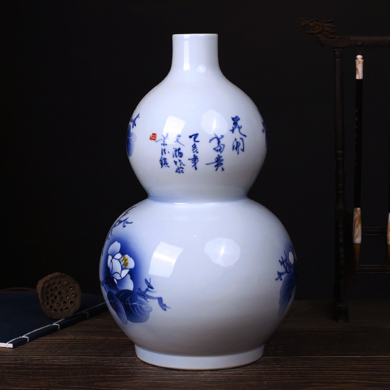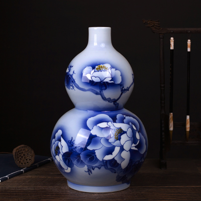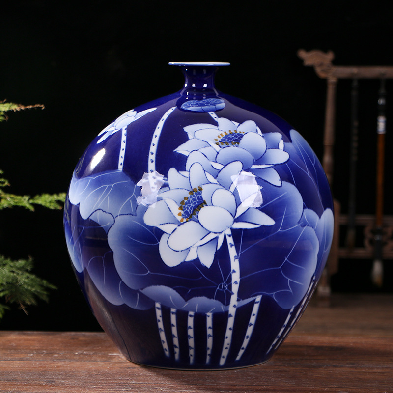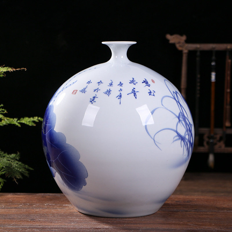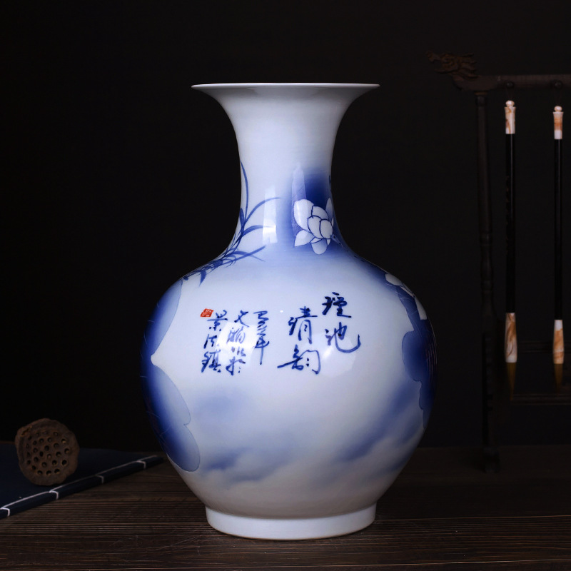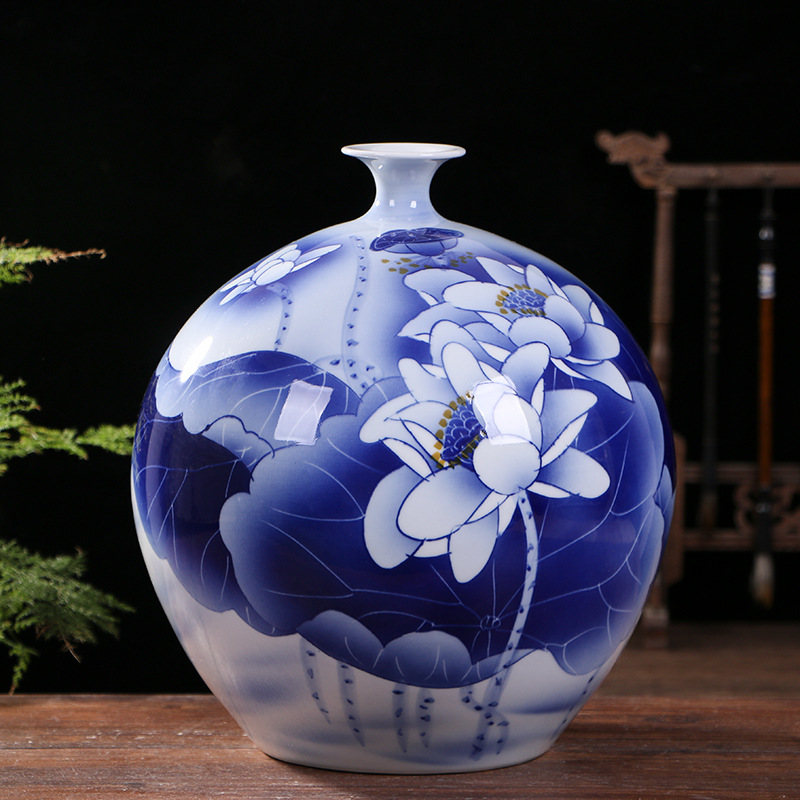 景德镇中式青花陶瓷花瓶手绘客厅电视柜工艺品家居博古架摆件礼品