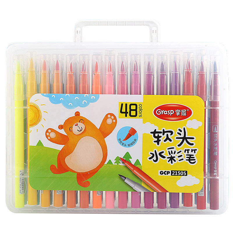 掌握21501软头水彩笔36色48色软笔可水洗大容量毛笔头绘画笔包邮