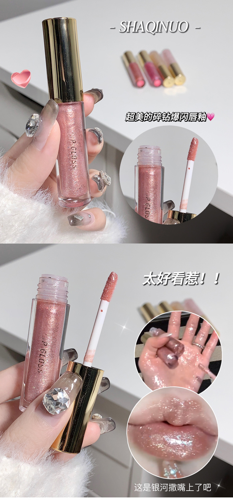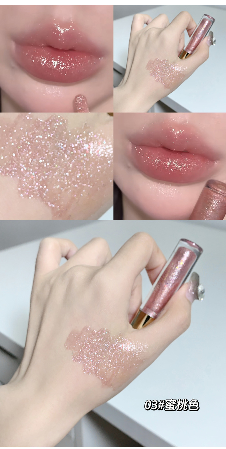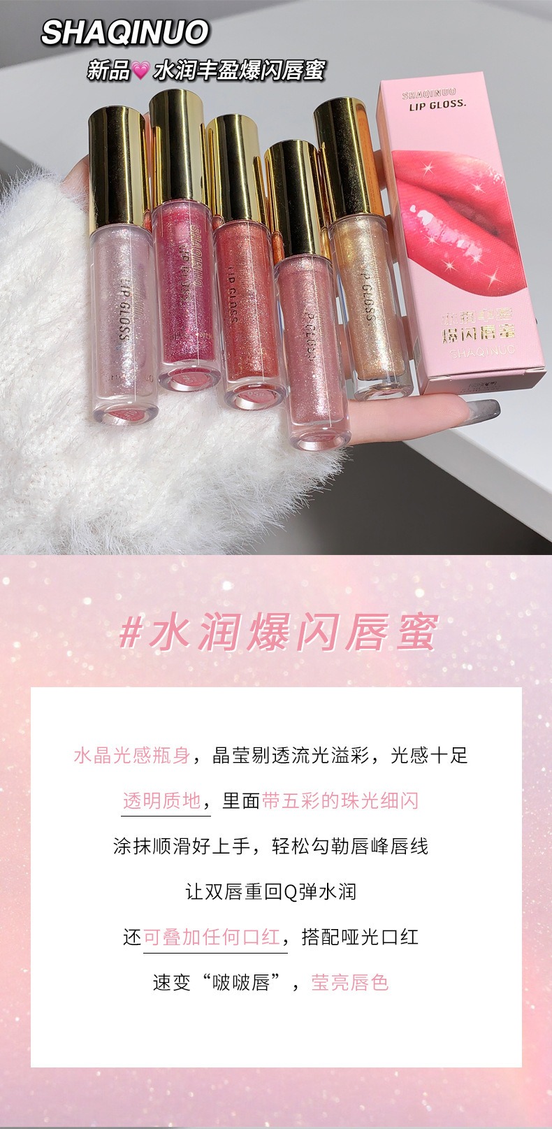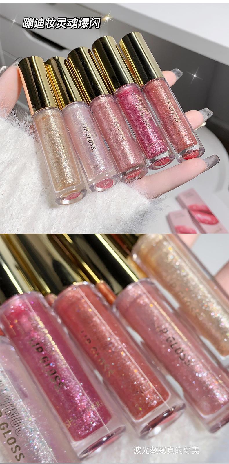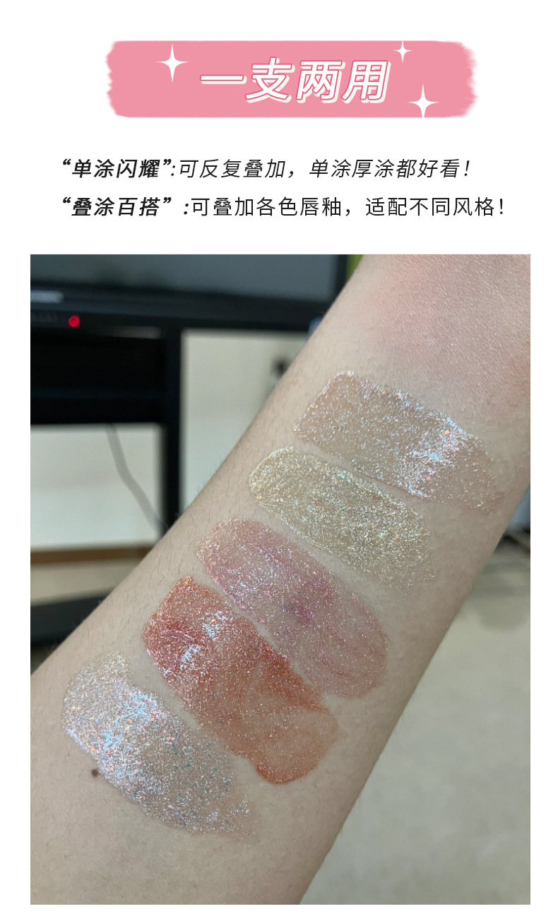 小刨冰爆灯闪唇蜜!碎钻唇彩珠光镜面水光嘟嘟唇细闪唇油滋润保湿