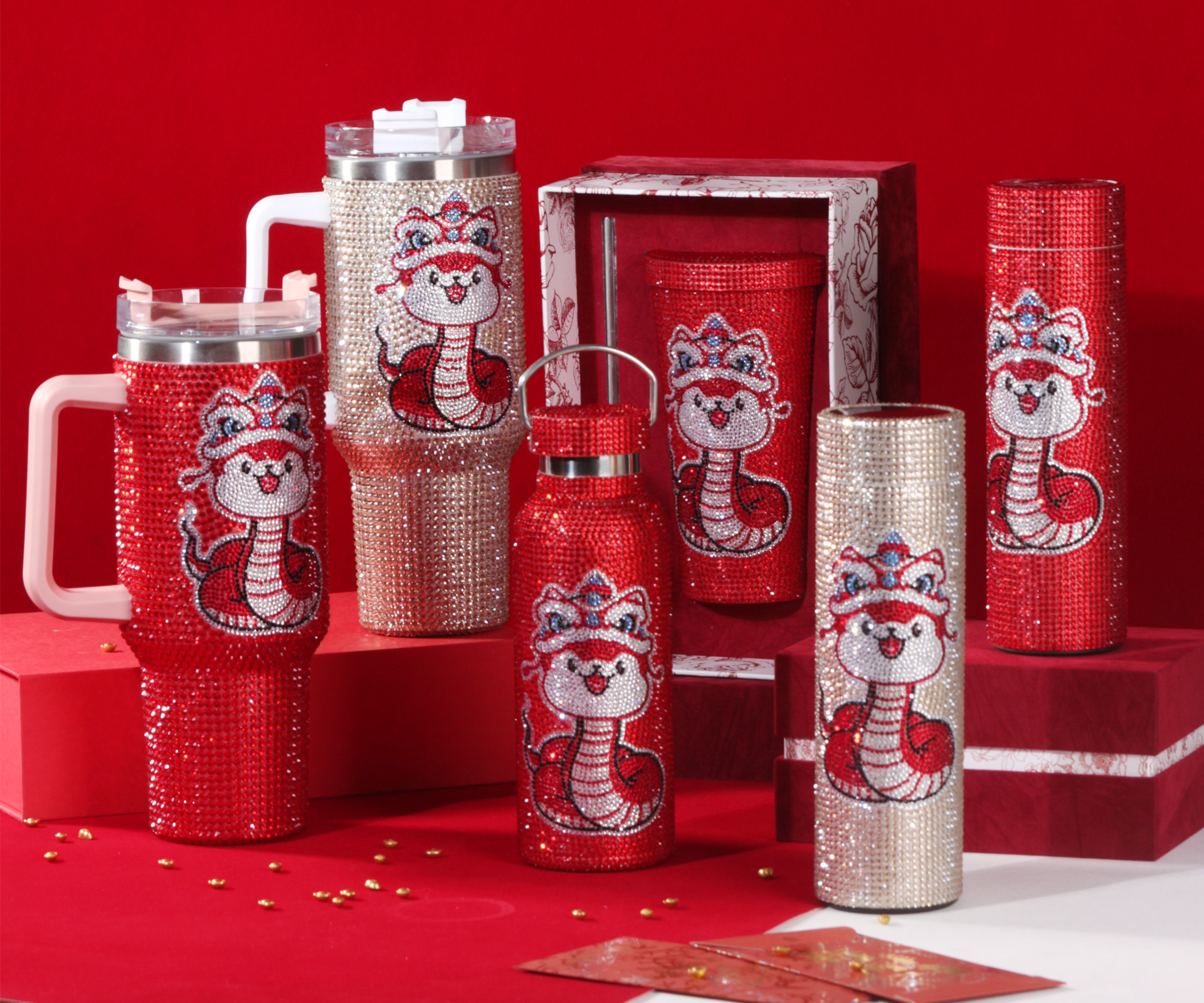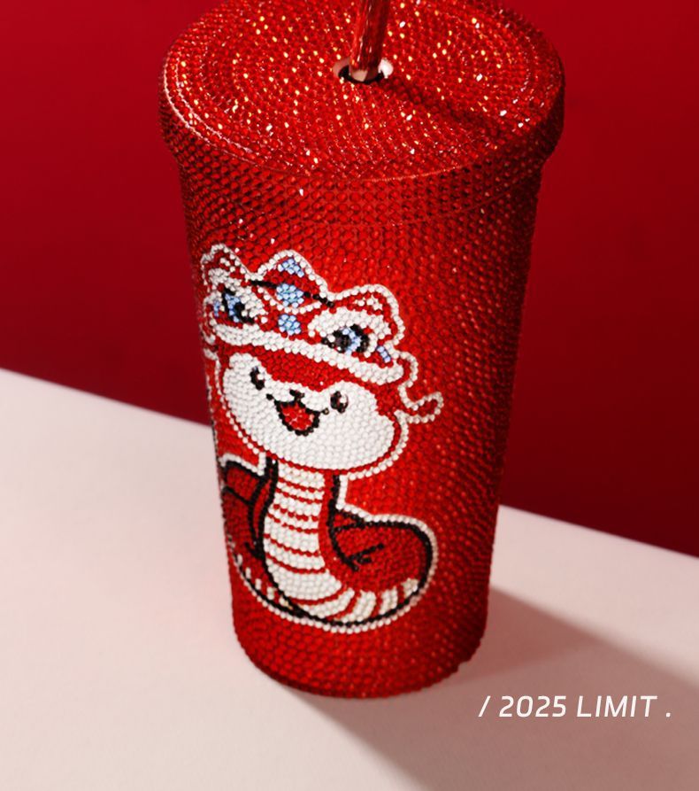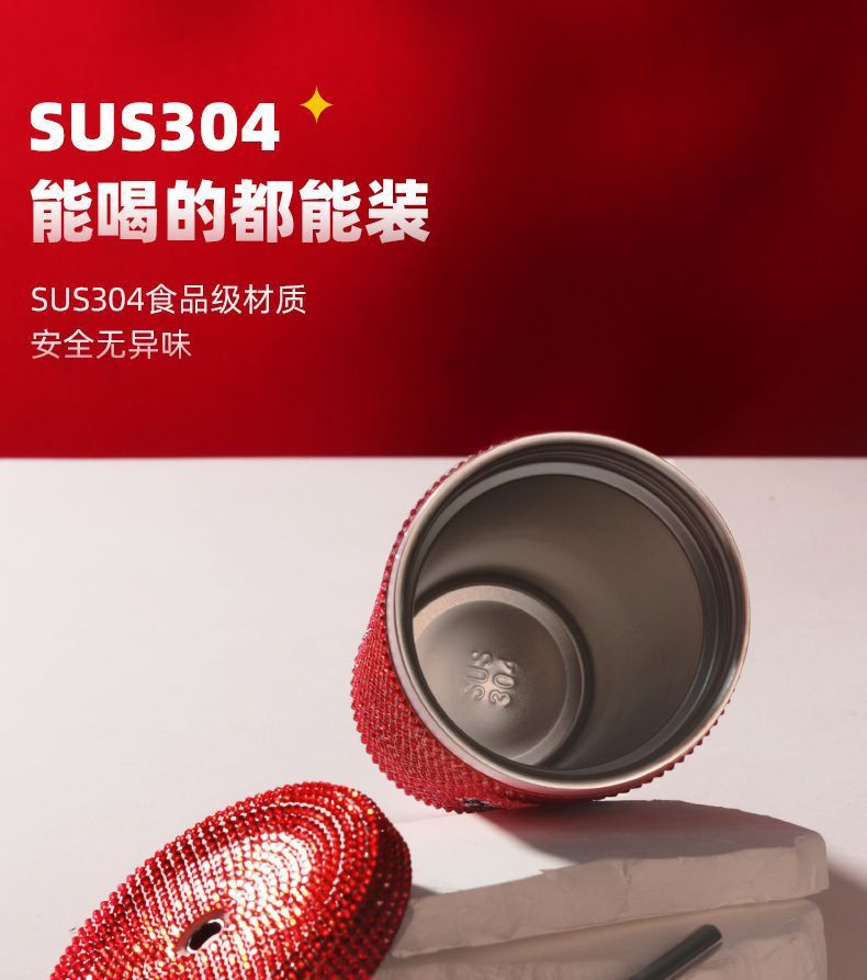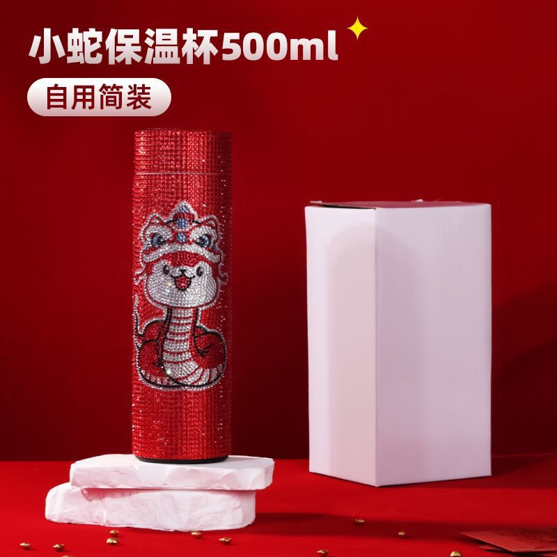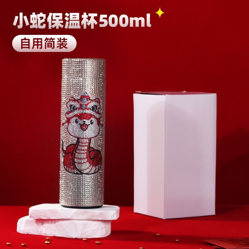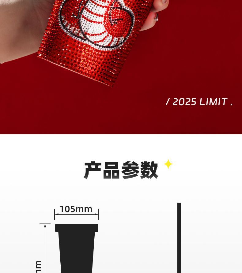 蛇年限定超萌网红吸管杯车载校园两用304不锈钢镶钻水钻吸管水杯