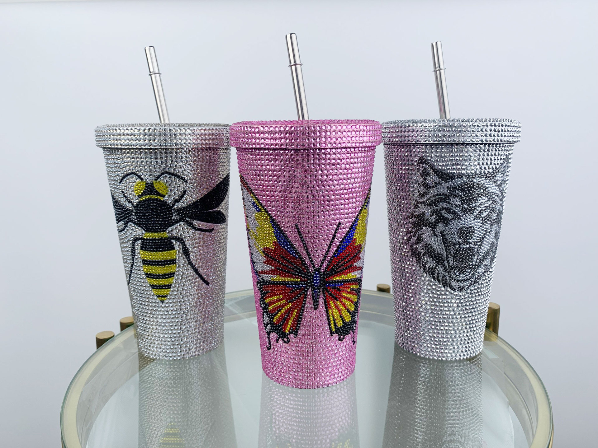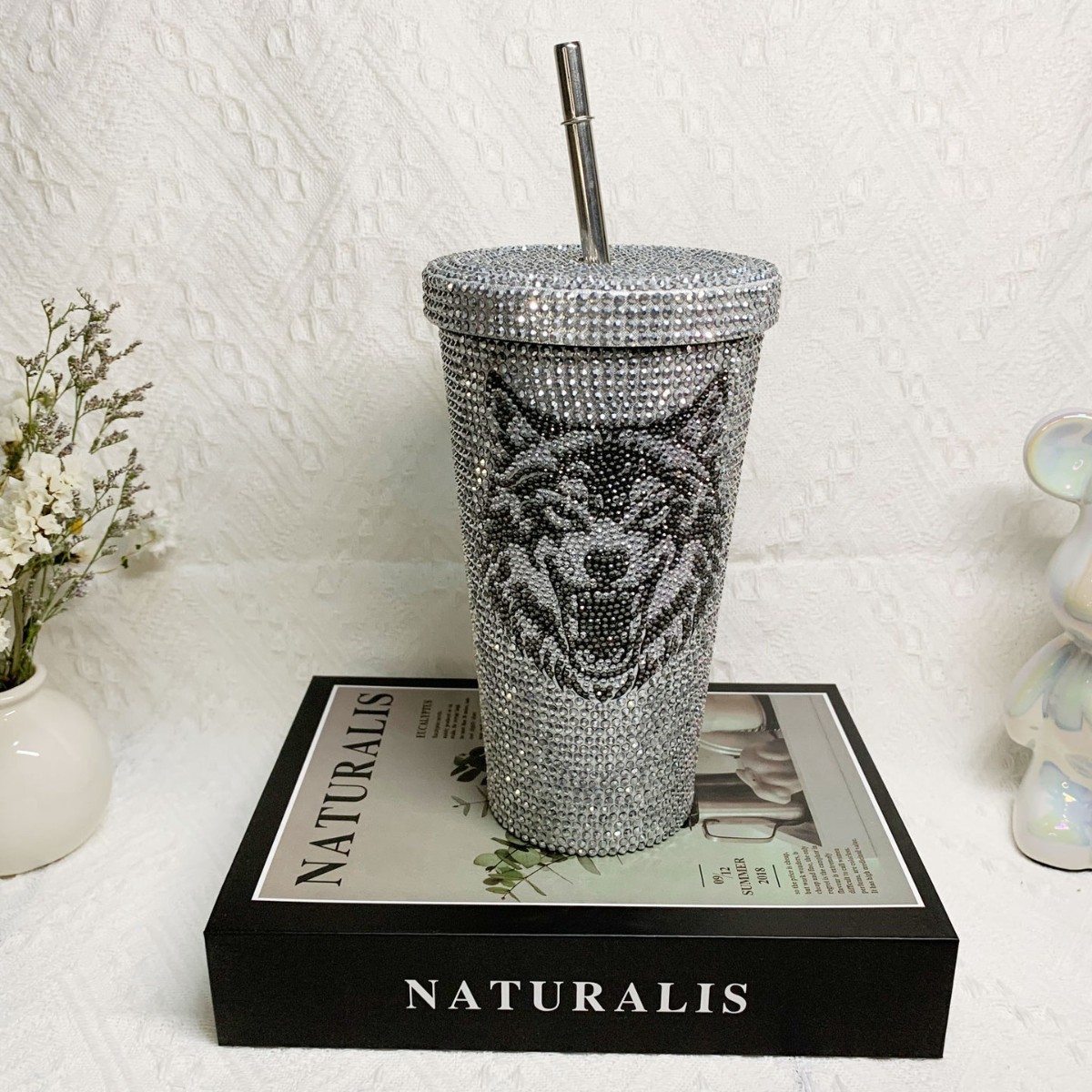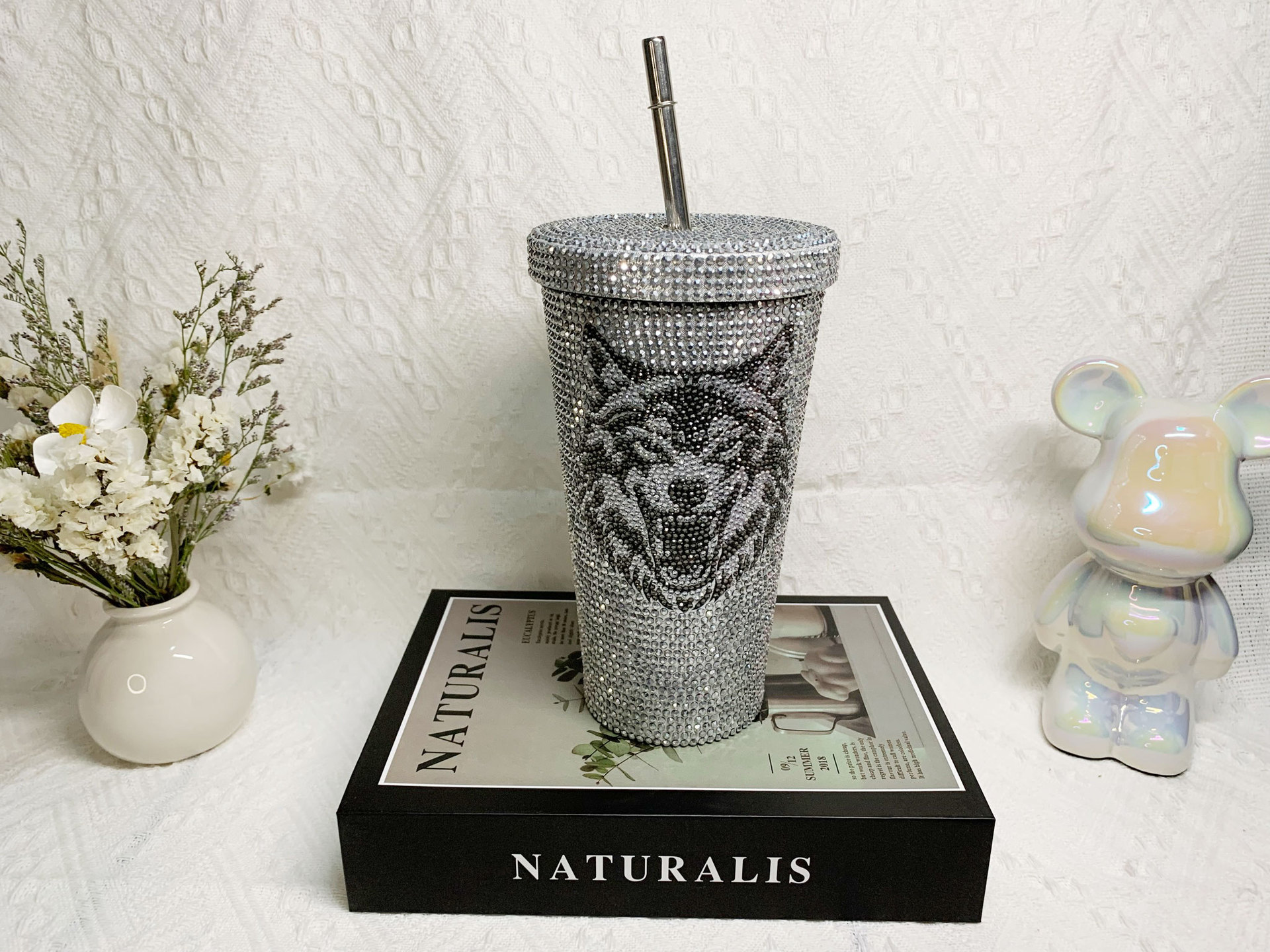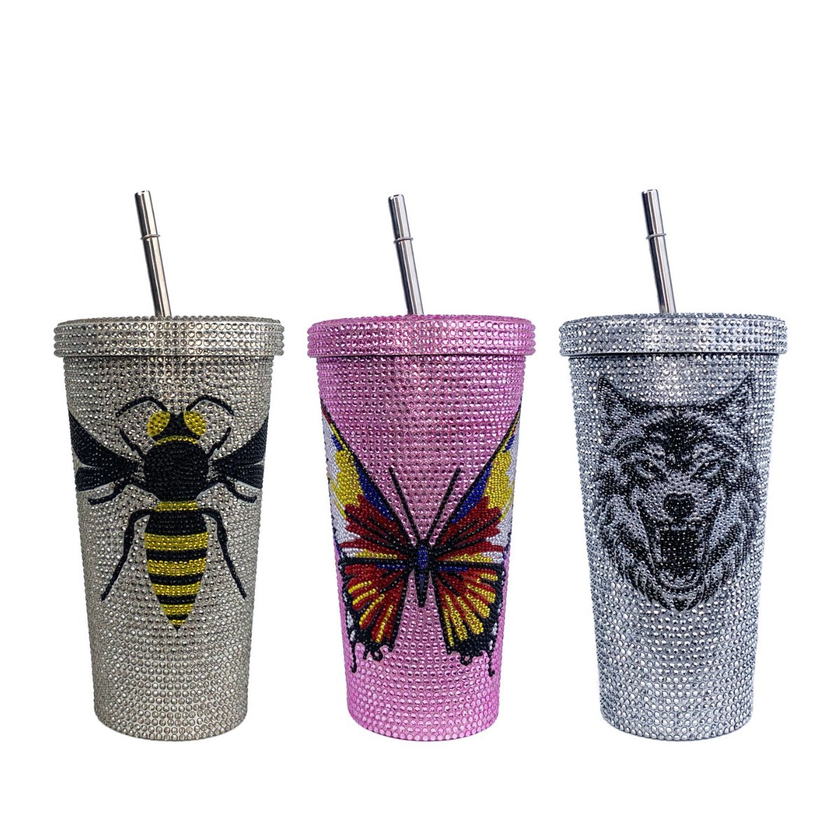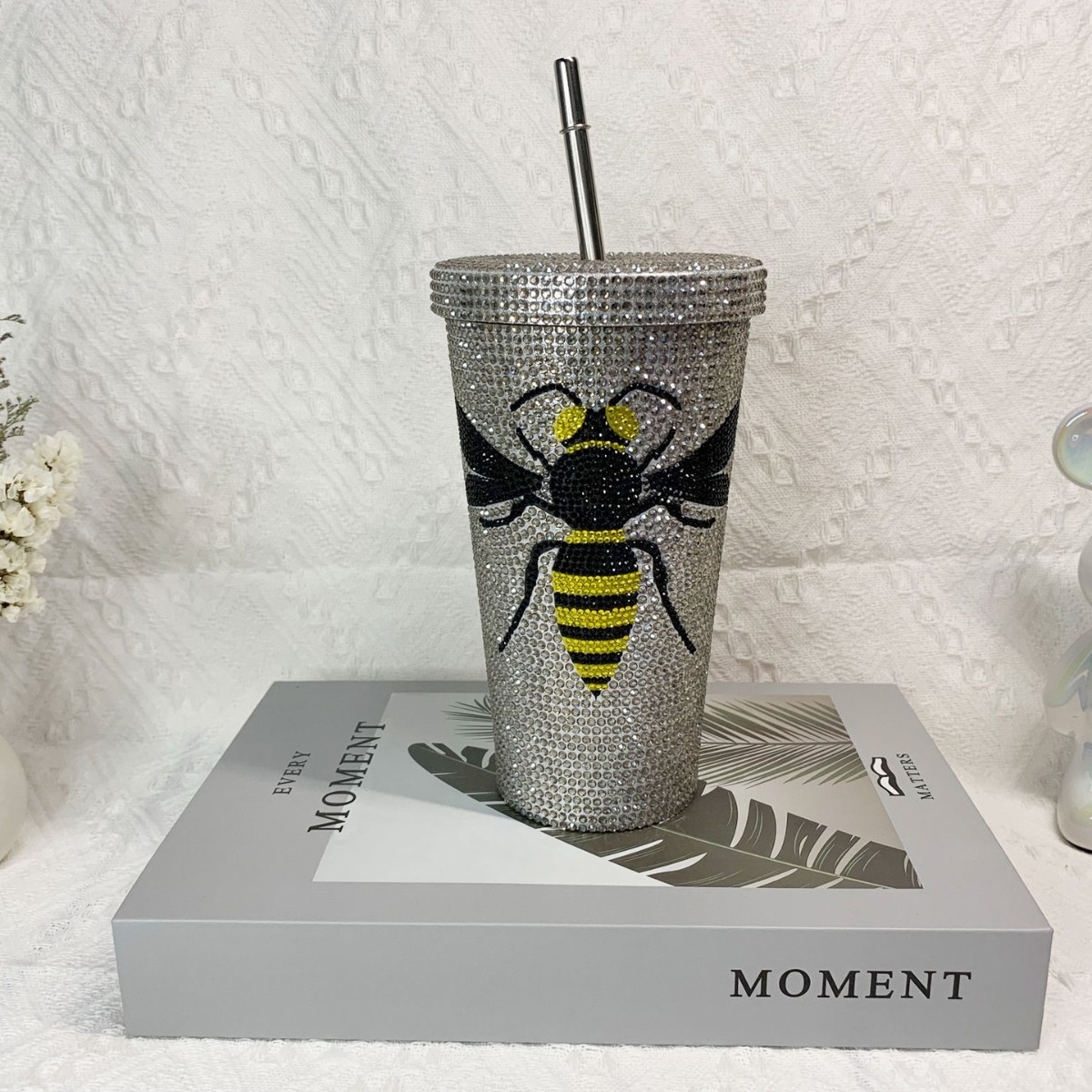 跨境欧美轻奢网红礼物水钻钻石镶钻满钻带盖水杯304不锈钢吸管杯