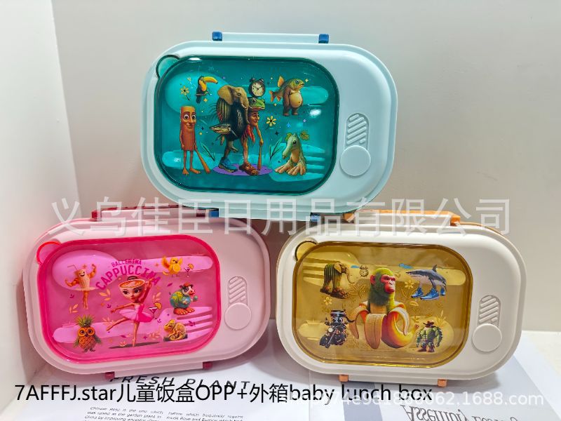 跨境热销电视机造型饭盒山海经图案萌趣儿童学生饭盒午餐盒便当盒