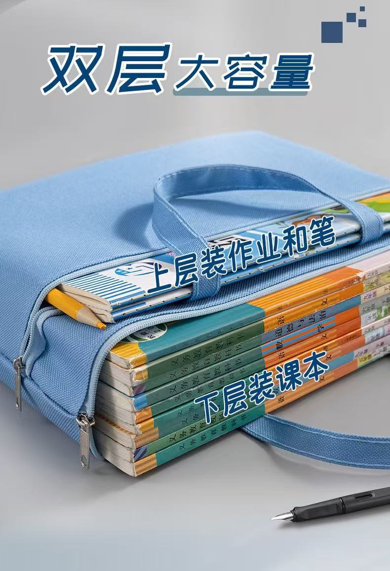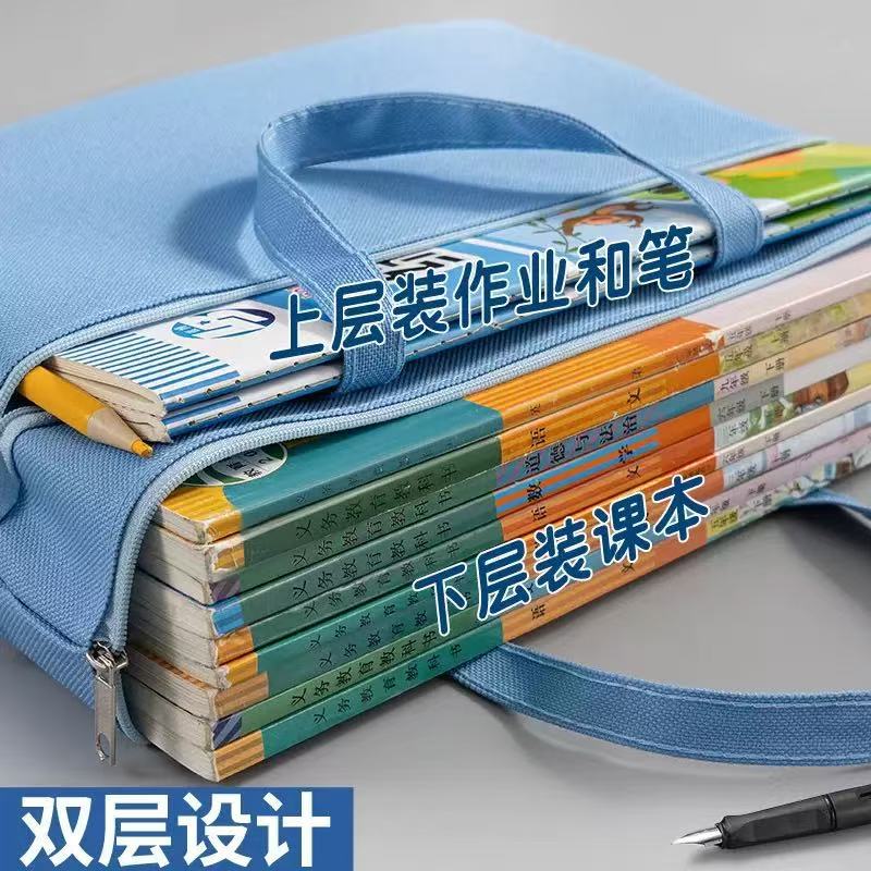 a4双层文件手提袋牛津布防水拉链大容量学生试卷补习袋资料收纳袋