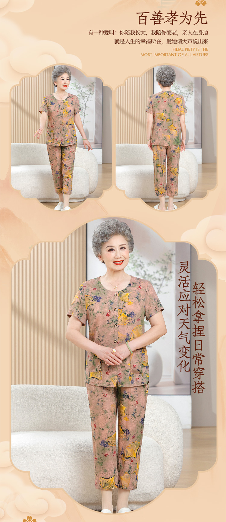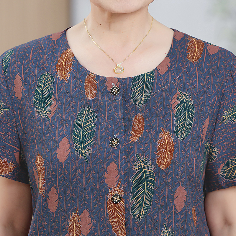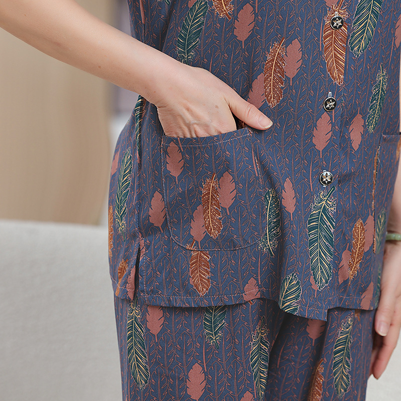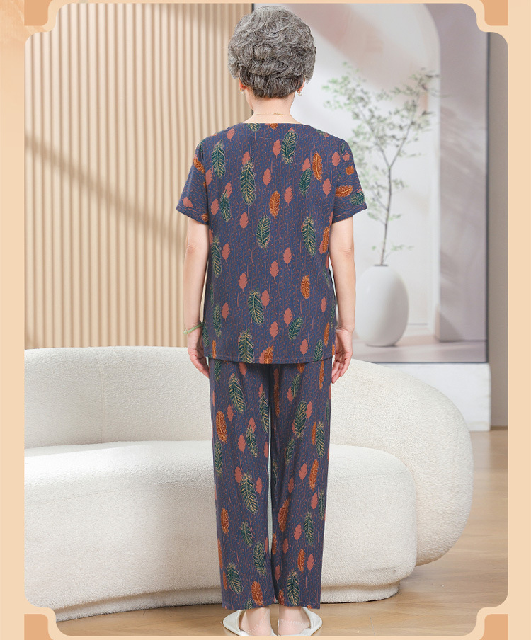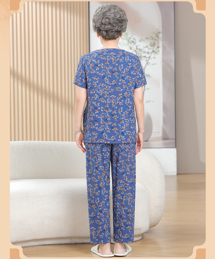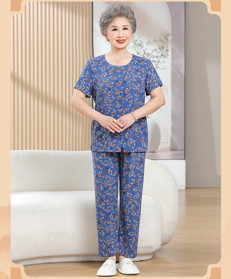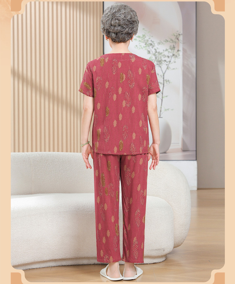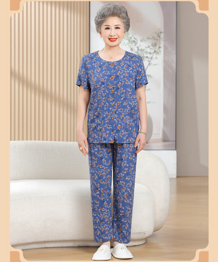 中老年女装短袖长裤棉绸套装奶奶夏装人造棉妈妈开衫两件套老太太